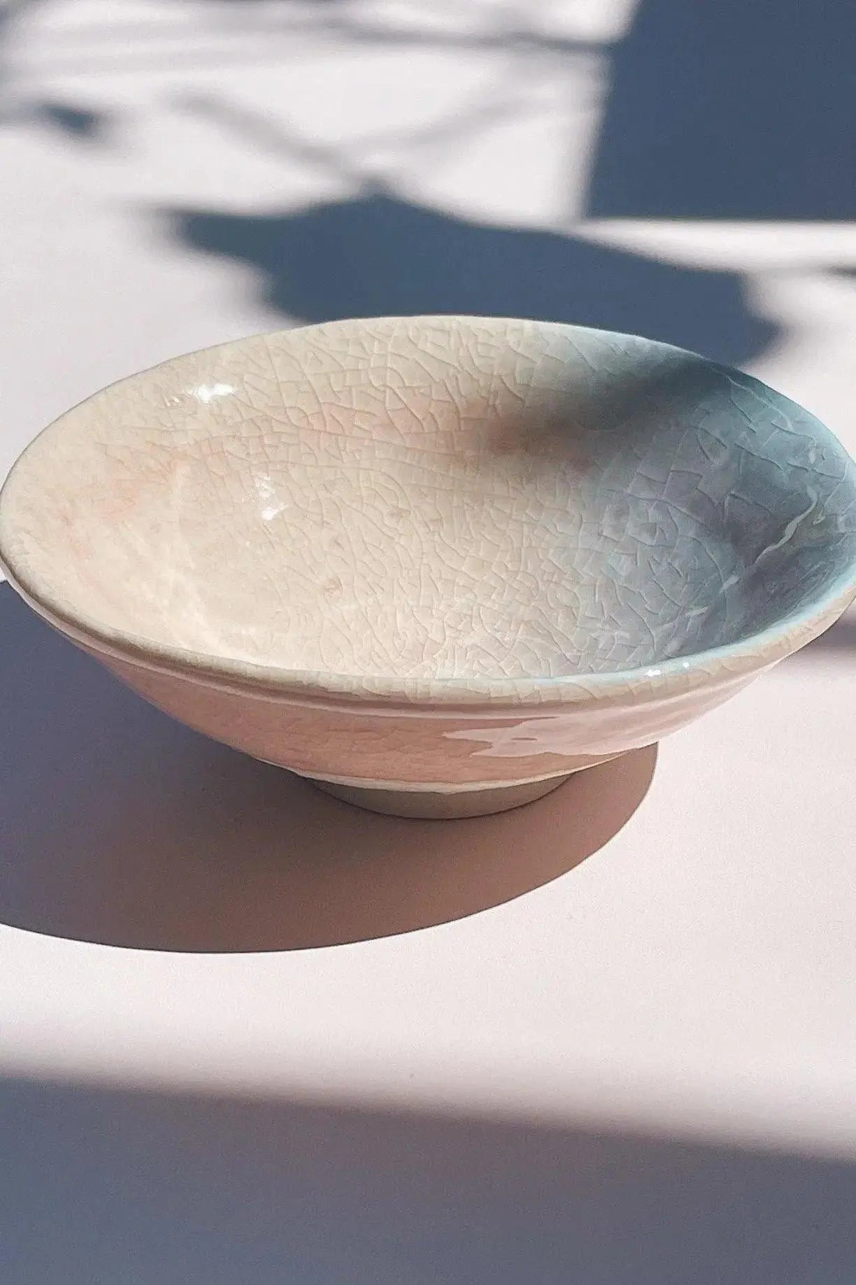 Handmade, Japanese bowl in the most beautiful pastel colours, pink and purple.