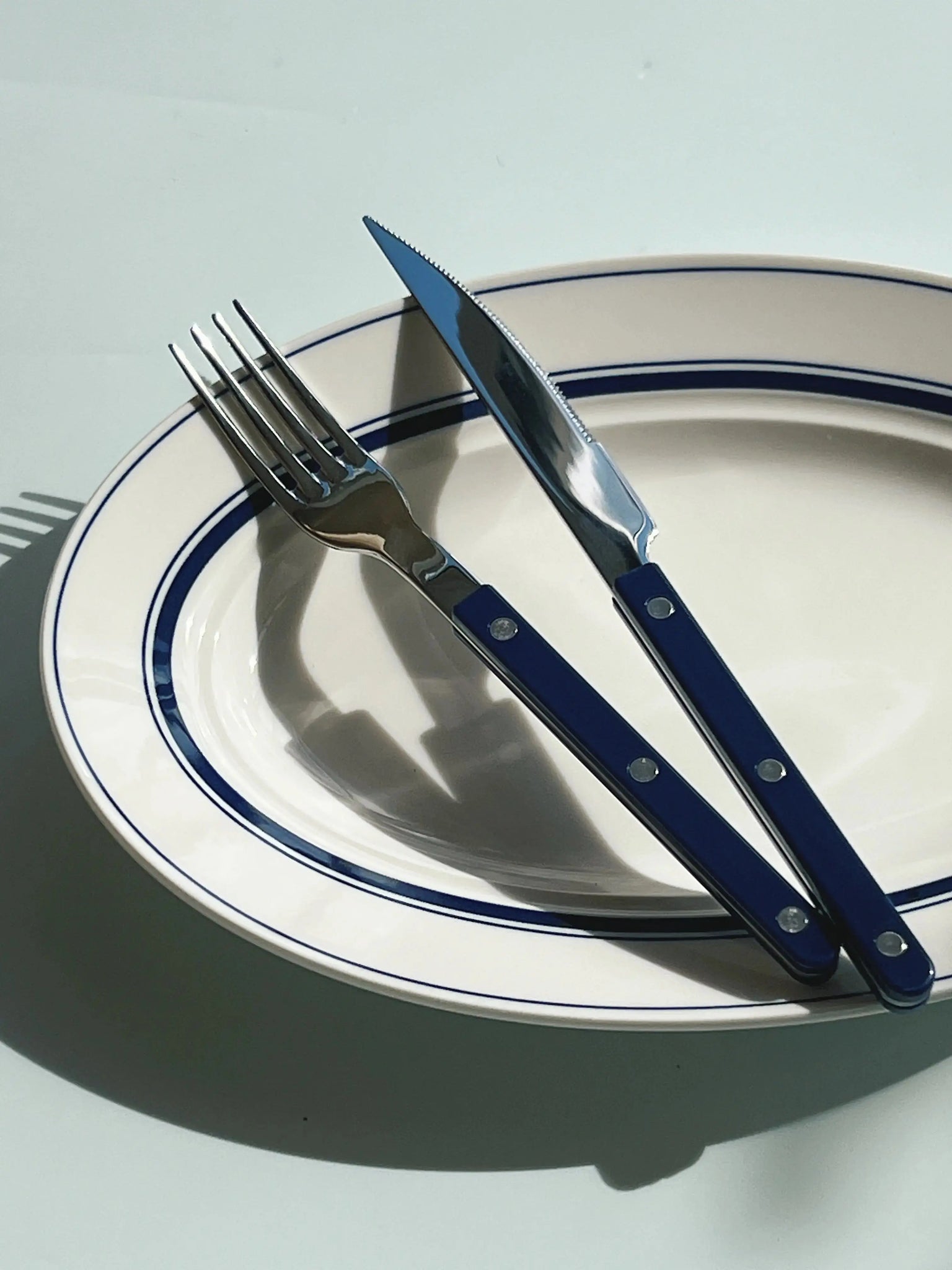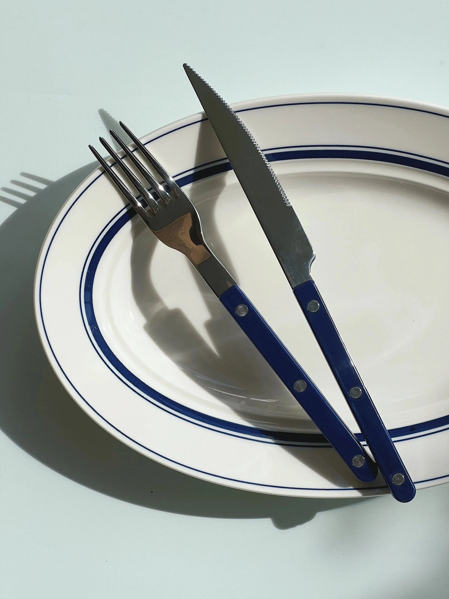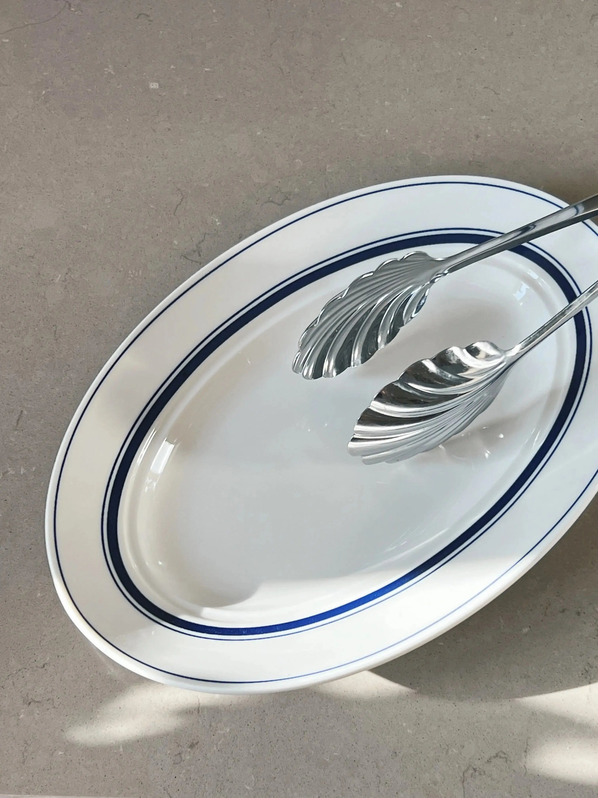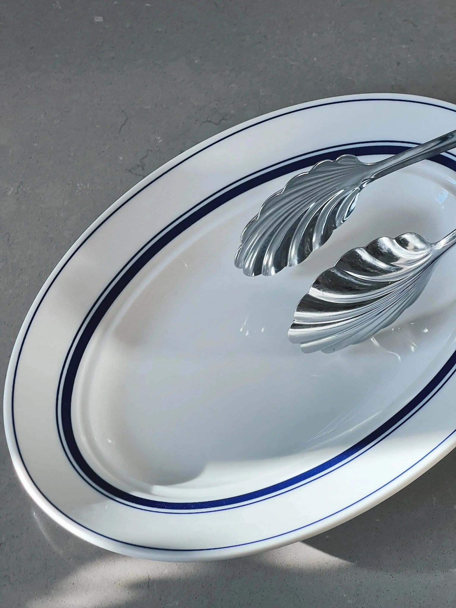 Beautiful retro serving dish in white ceramic with blue stripes from Japan. In the same series there are also plates , deep plates and bowls . The serving dish is perfect to use for starters, dessert, cake and the like, and it can also be used for serving pasta, fruit, vegetables, fish etc.