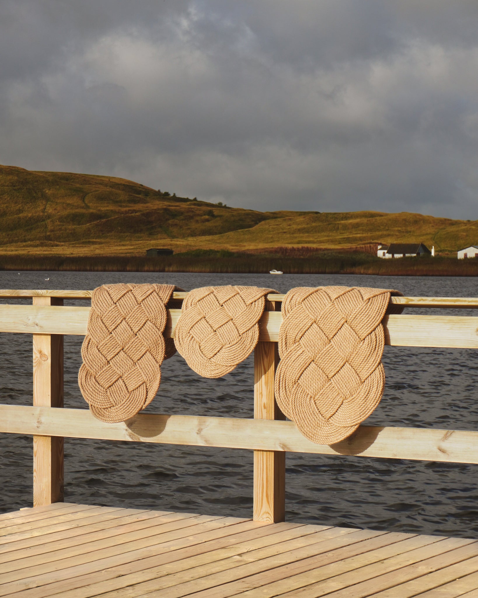 The geometric braid pattern is inspired by the movement of the sea and adds warmth and texture to any entryway, kitchen, summer house or balcony. Despite its artistic appearance, the mat is also highly functional – and works perfectly as a doormat, as long as it is placed in dry environments.