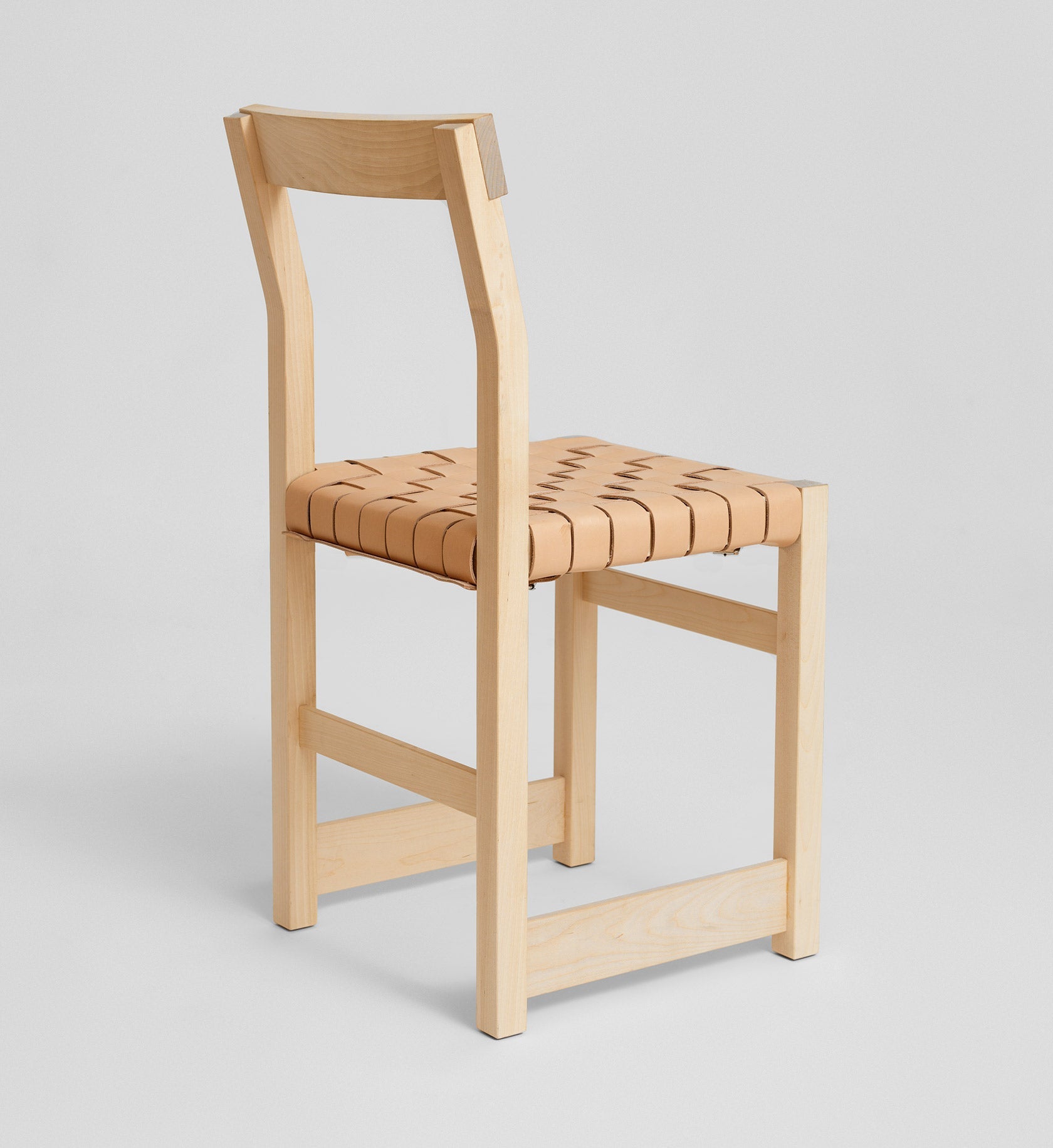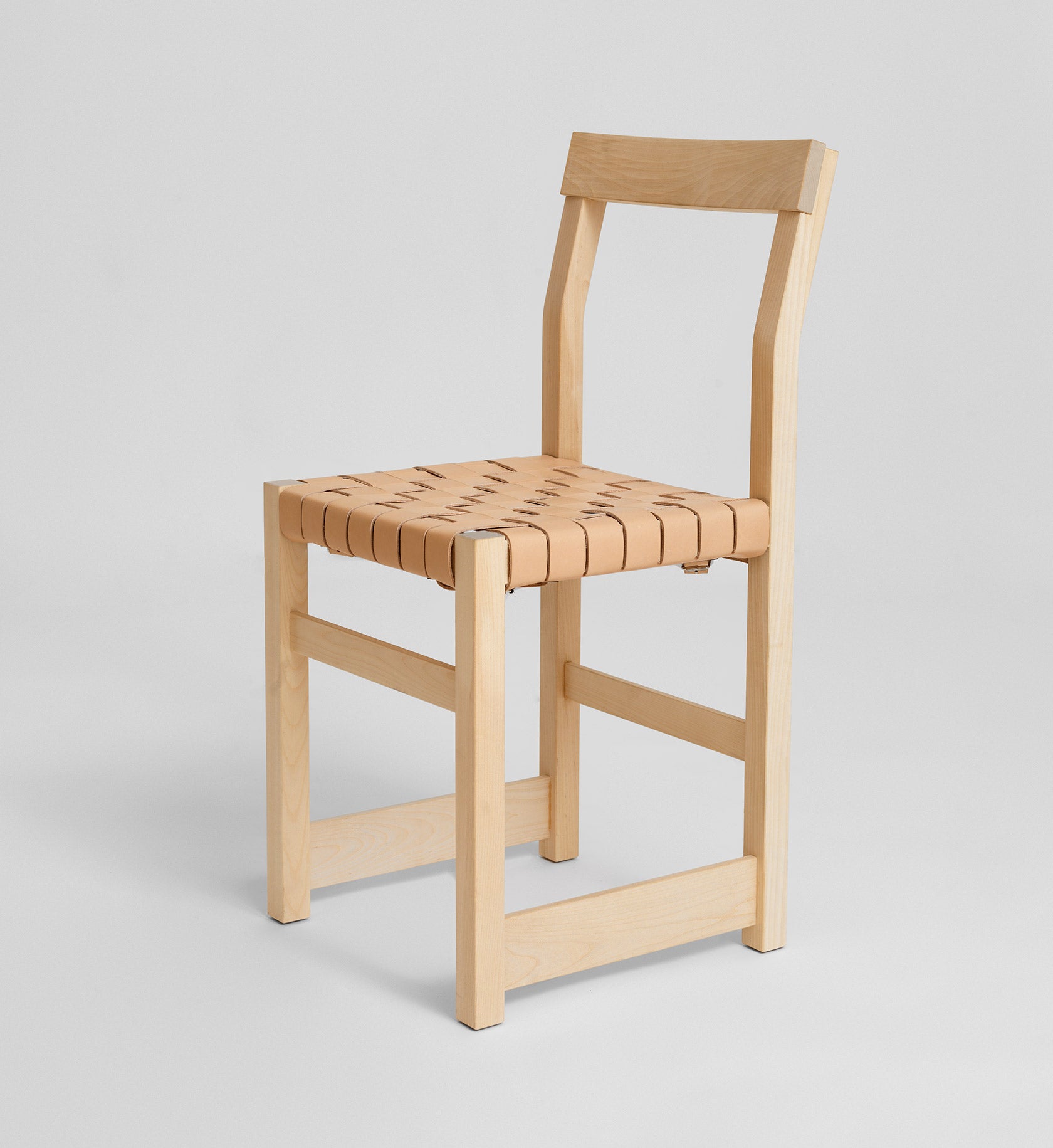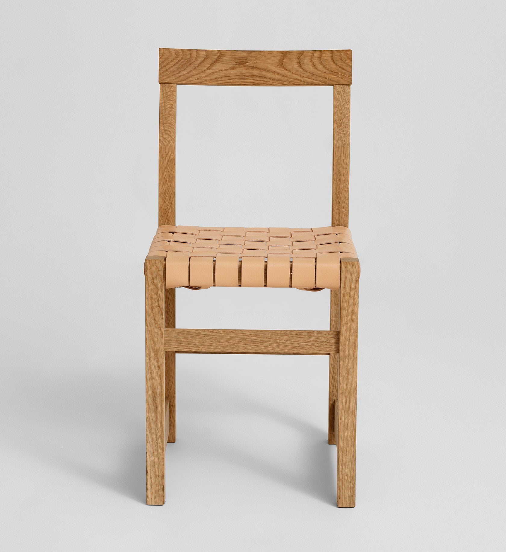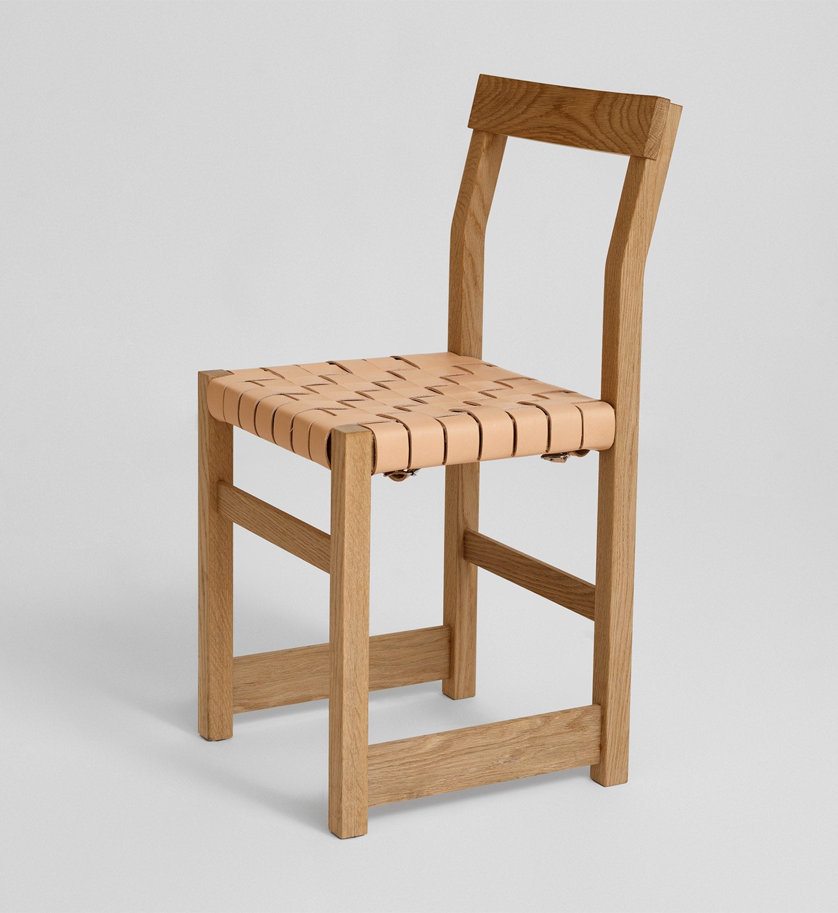 The chair is available with three different seat options: a seat in solid wood, a smooth leather seat or a braided leather seat – both made from vegetable-tanned Swedish leather. The leather seats are self-supporting, replaceable and can be gradually tightened over time, extending the chair’s lifespan and maintaining comfort.