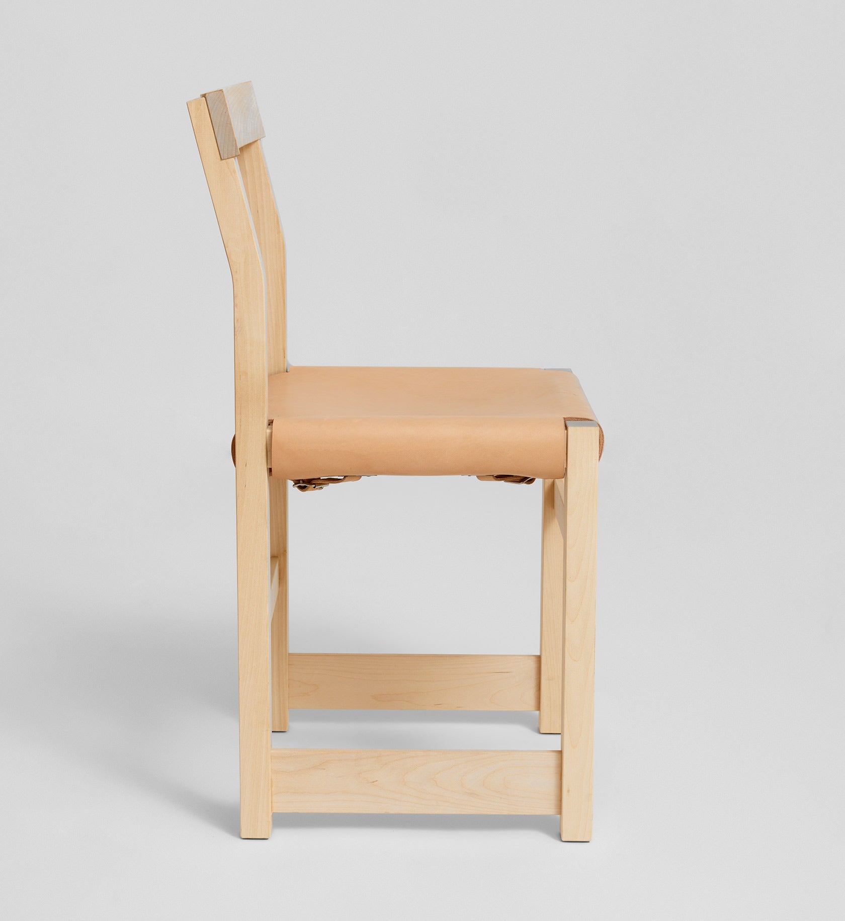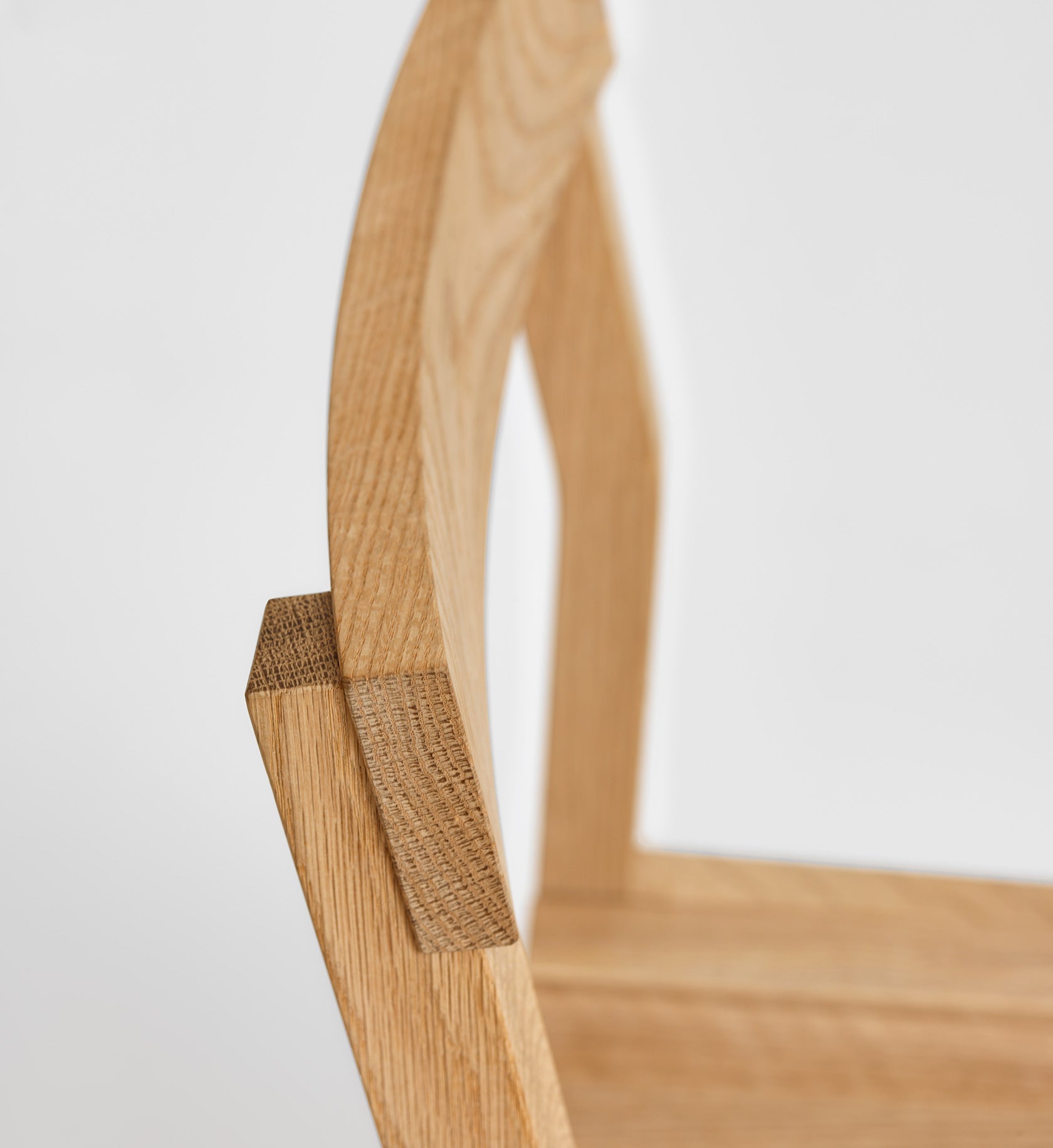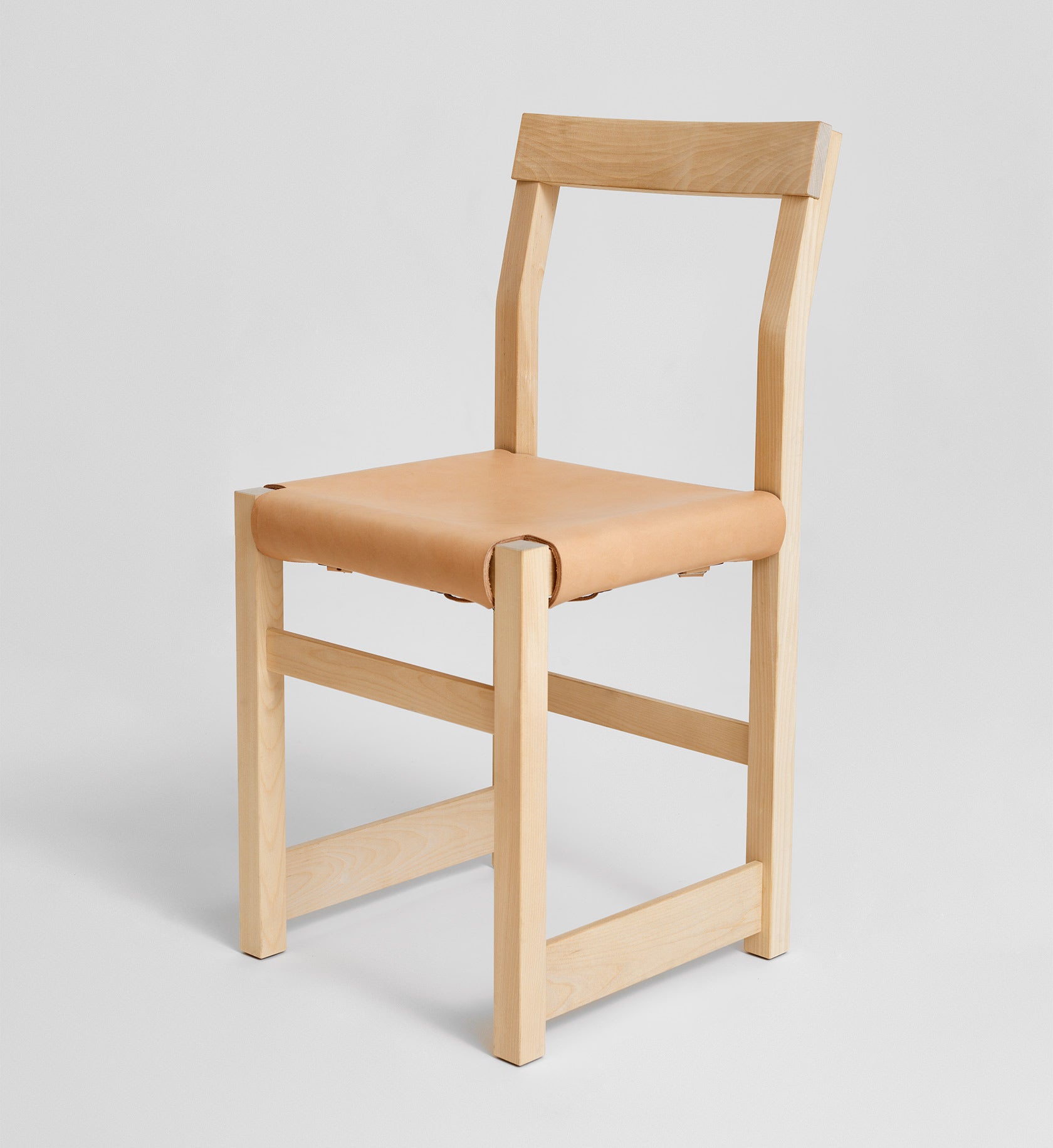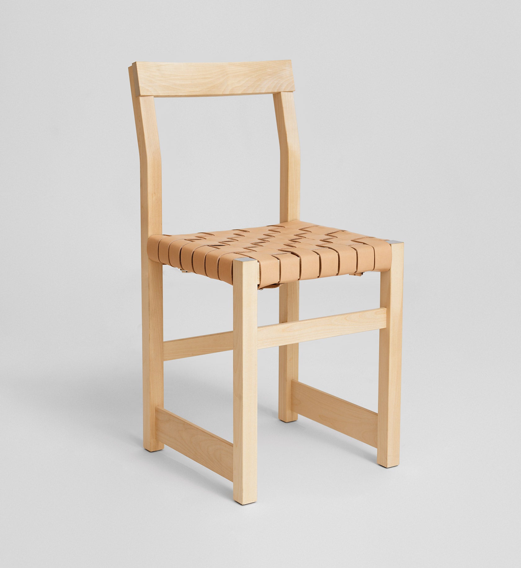 The chair is available with three different seat options: a seat in solid wood, a smooth leather seat or a braided leather seat – both made from vegetable-tanned Swedish leather. The leather seats are self-supporting, replaceable and can be gradually tightened over time, extending the chair’s lifespan and maintaining comfort.