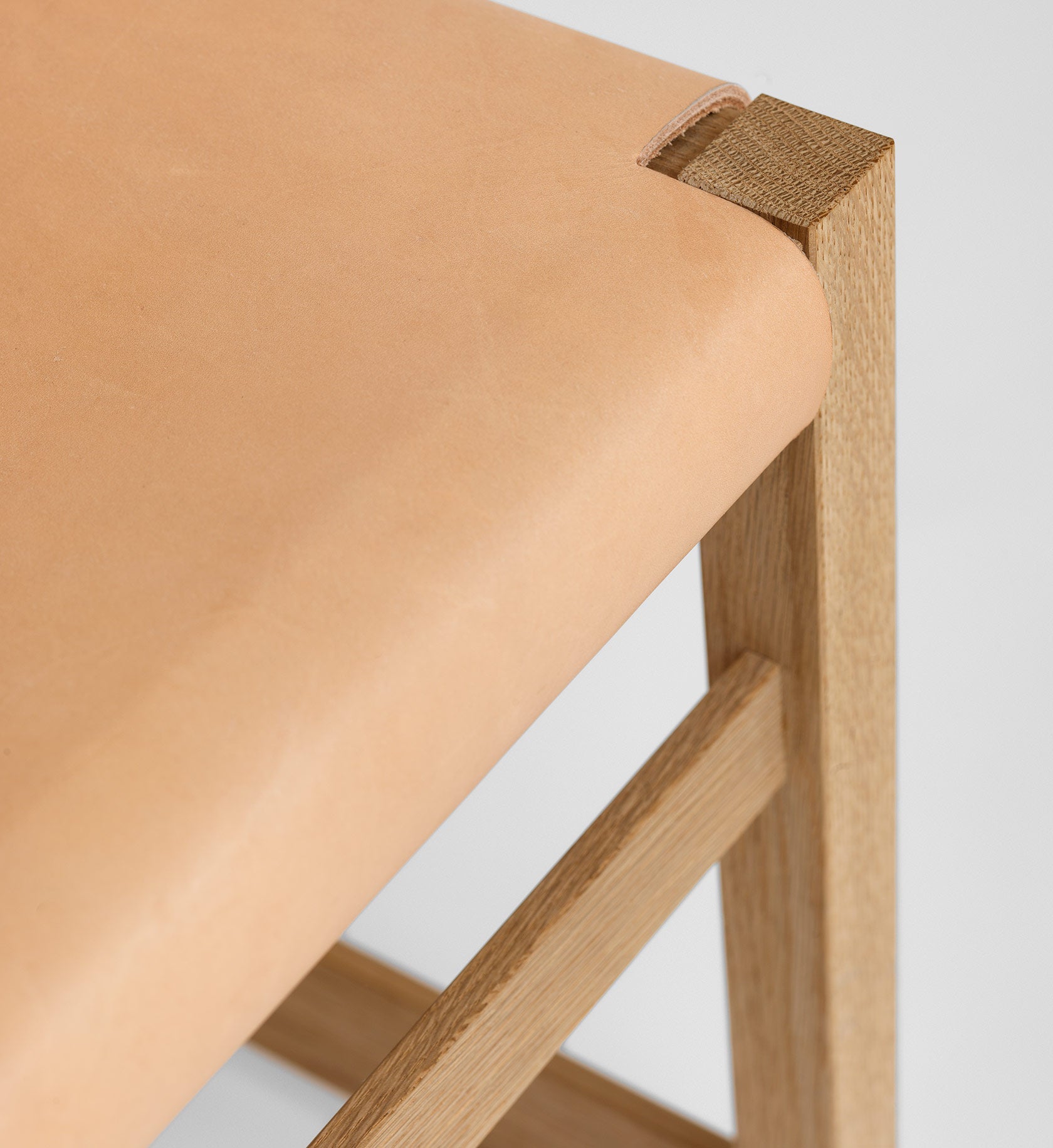 - Seat in solid wood (oak or birch), smooth vegetable-tanned Swedish leather, or braided vegetable-tanned leather