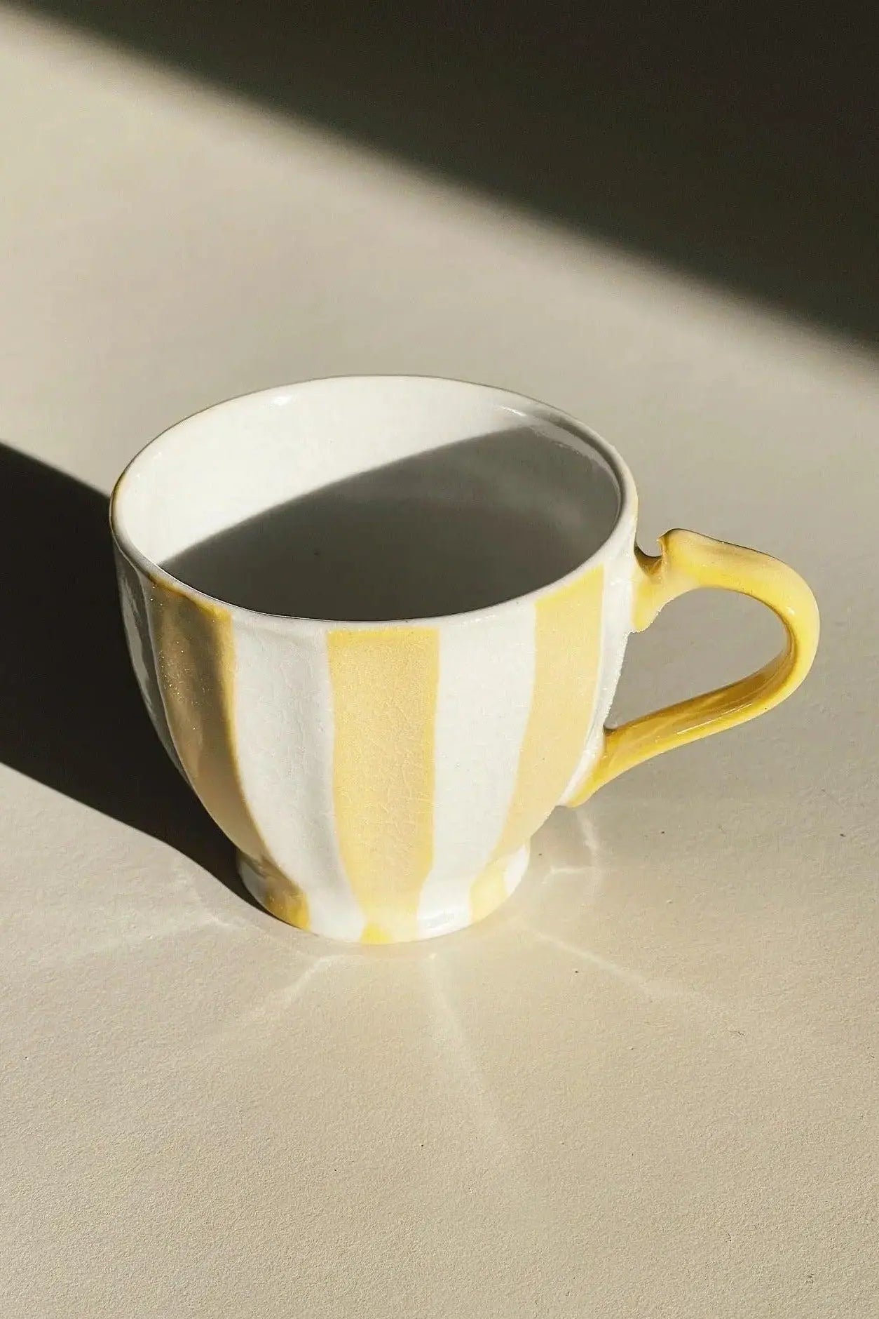 Japanese mug with handle in ceramic | Yellow/White striped
