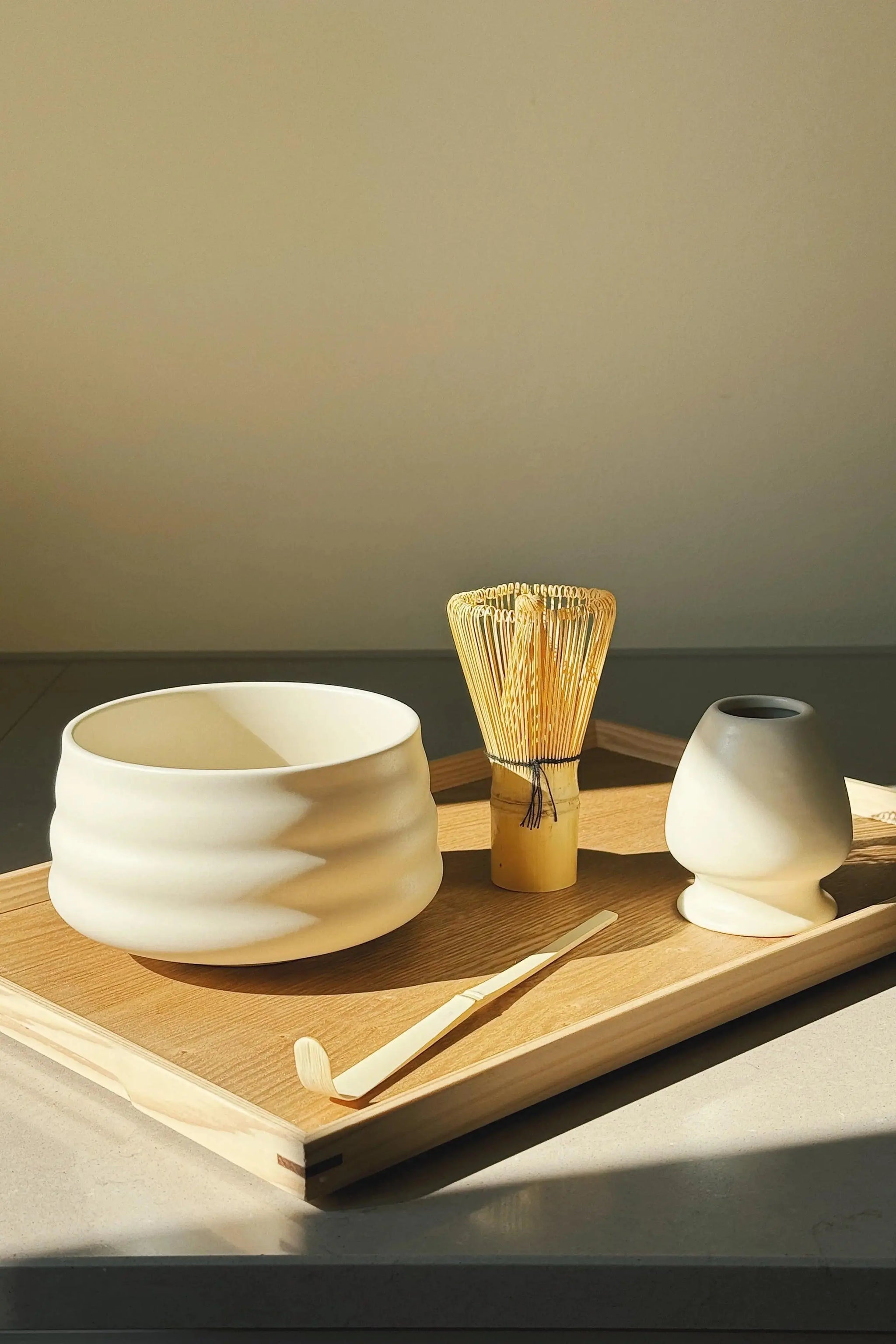 Matcha Starter Set – Bowl, Whisk, Scoop & Holder (White Ceramic)