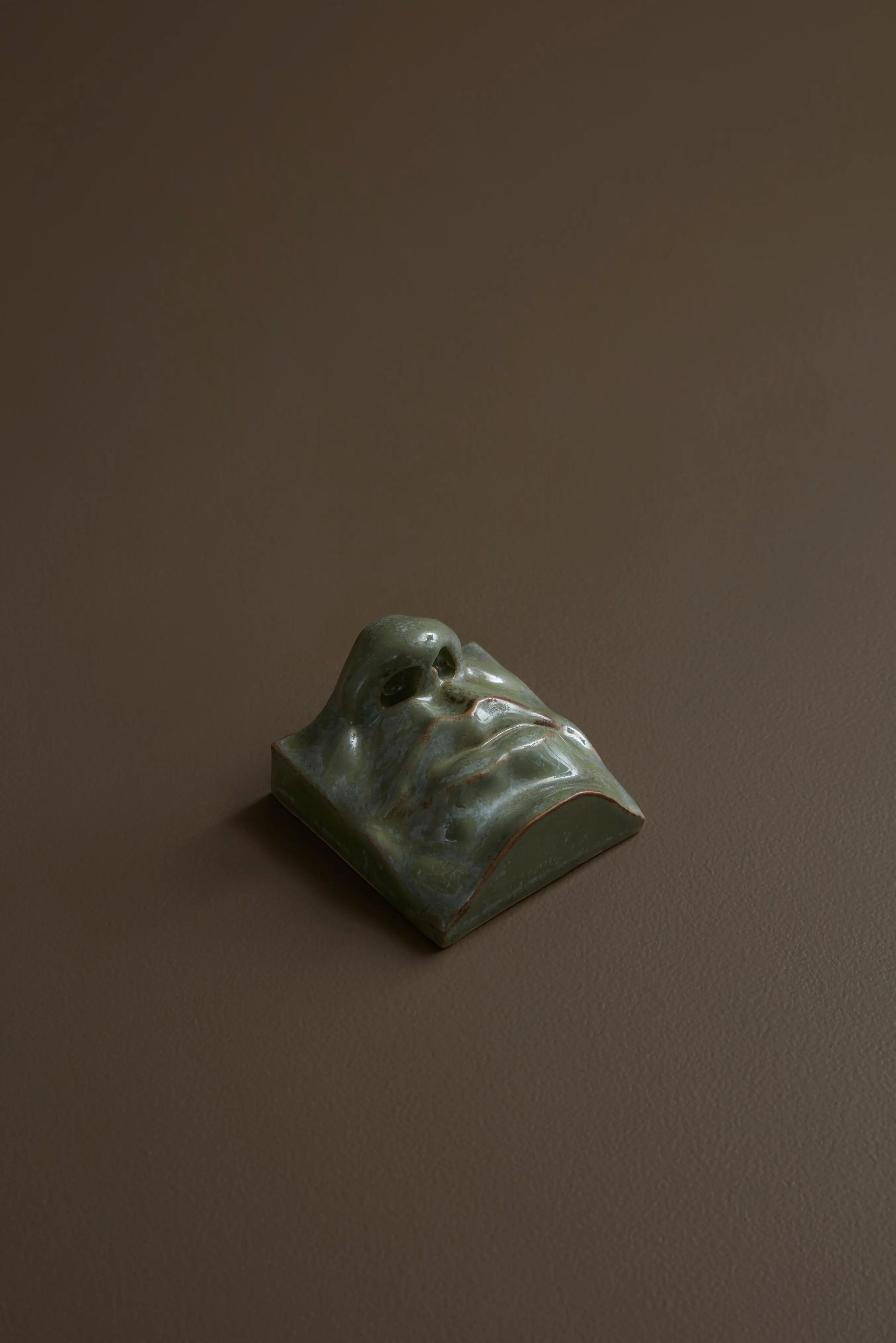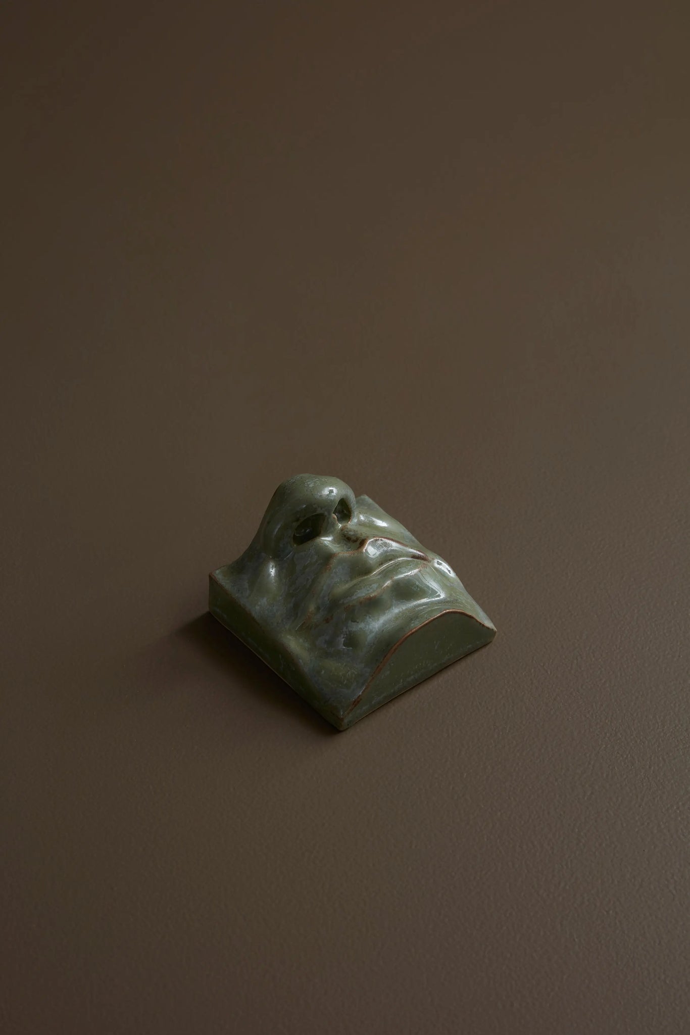 Dive into a world of unique wall art with this square Mouth 2 from Laoru Laoru's series of facial fragments. This piece invites you to explore endless possibilities as it can be freely combined with other fragments to create your own unique art wall. Mouth 1 is rounder and more feminine in expression compared to the square Mouth 2, which also features a distinct cleft in the chin. The mouth comes in CopperGreen – a vibrant glaze with natural play and dark brown details.