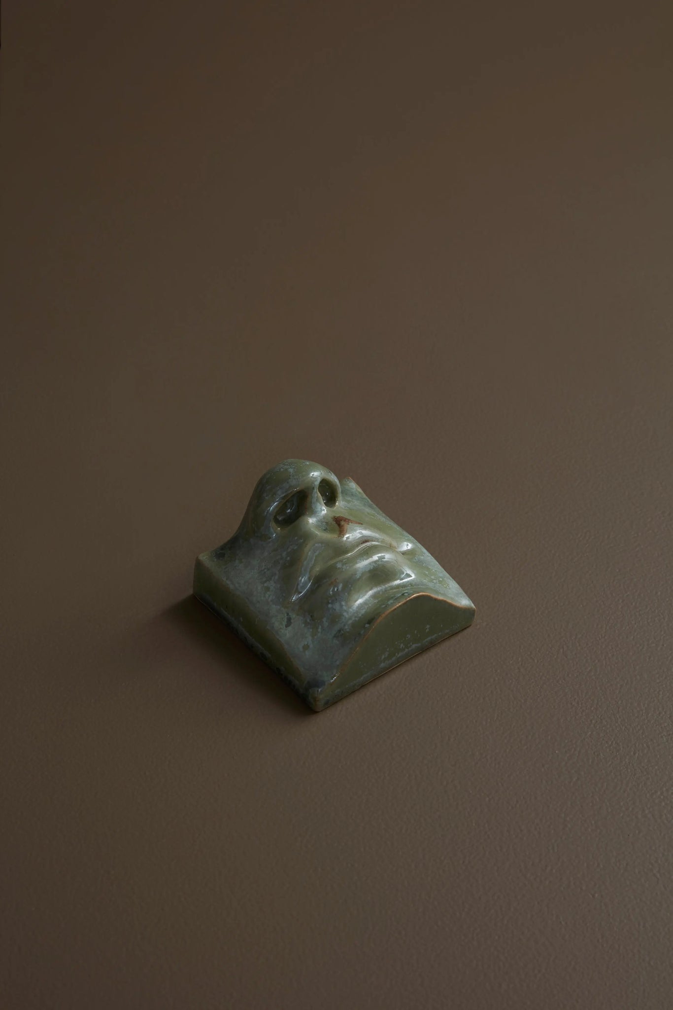 Made of glazed white stoneware in CopperGreen, this mouth is designed to be wall-mounted and works just as well on its own as it does when combined with other facial fragments.