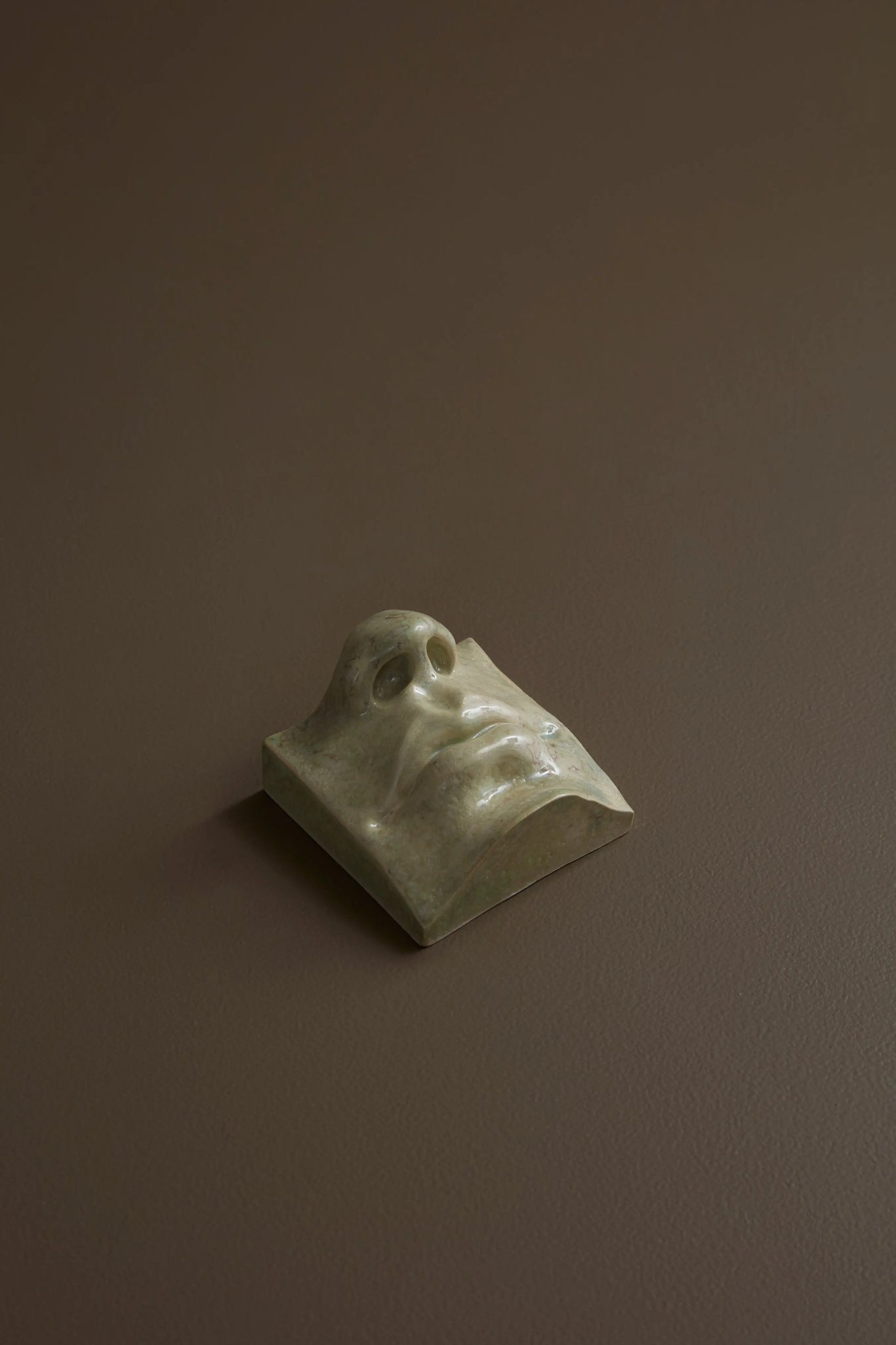 Made from glazed white stoneware in CrystalGreen, this mouth is designed to be hung on the wall and works equally well on its own or together with other face fragments.