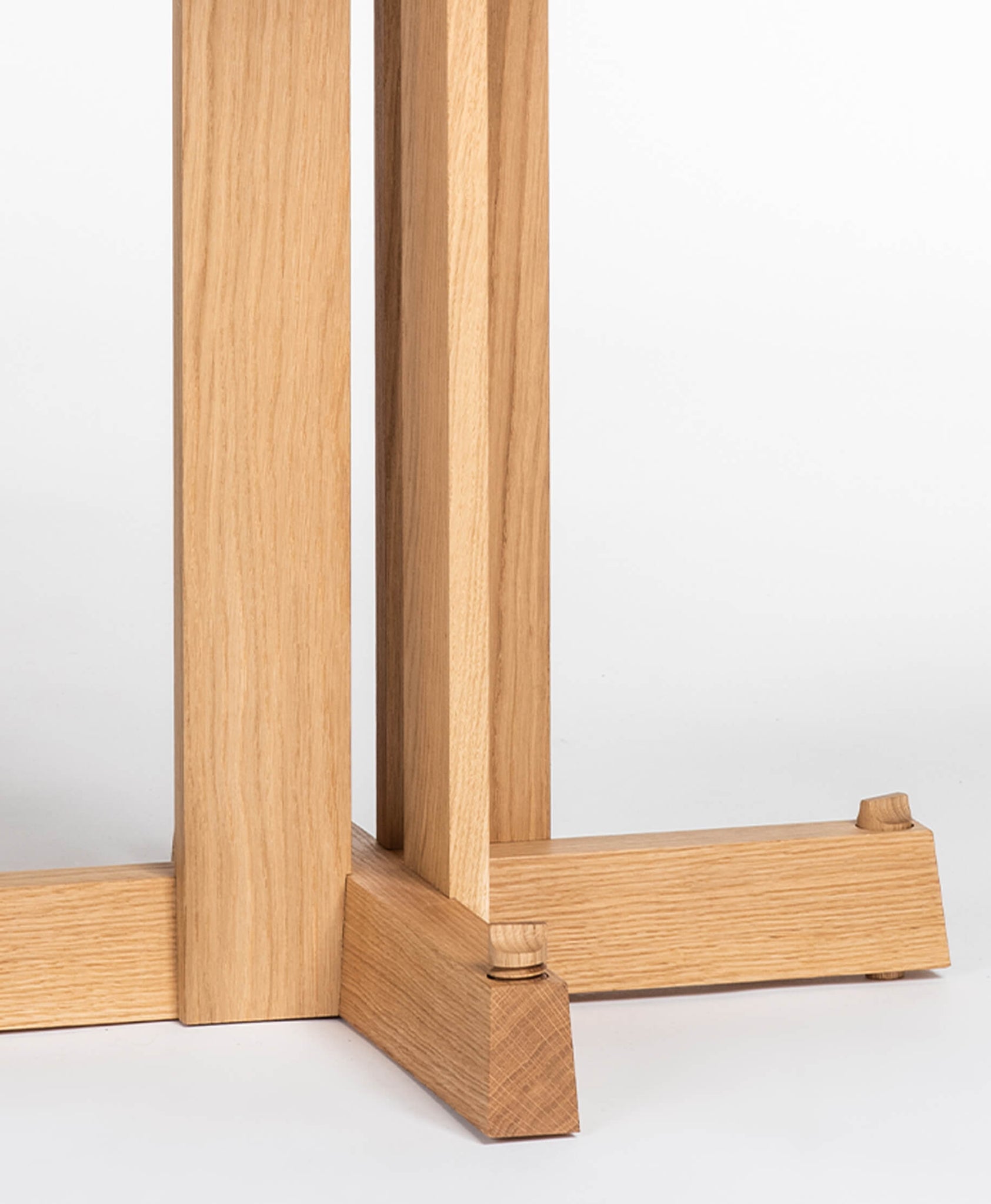 The design is developed without the use of screws and with a clear focus on functional joinery, where every element has an obvious and honest purpose. The table can be examined from every angle and is carefully balanced in terms of proportions, shape and material.