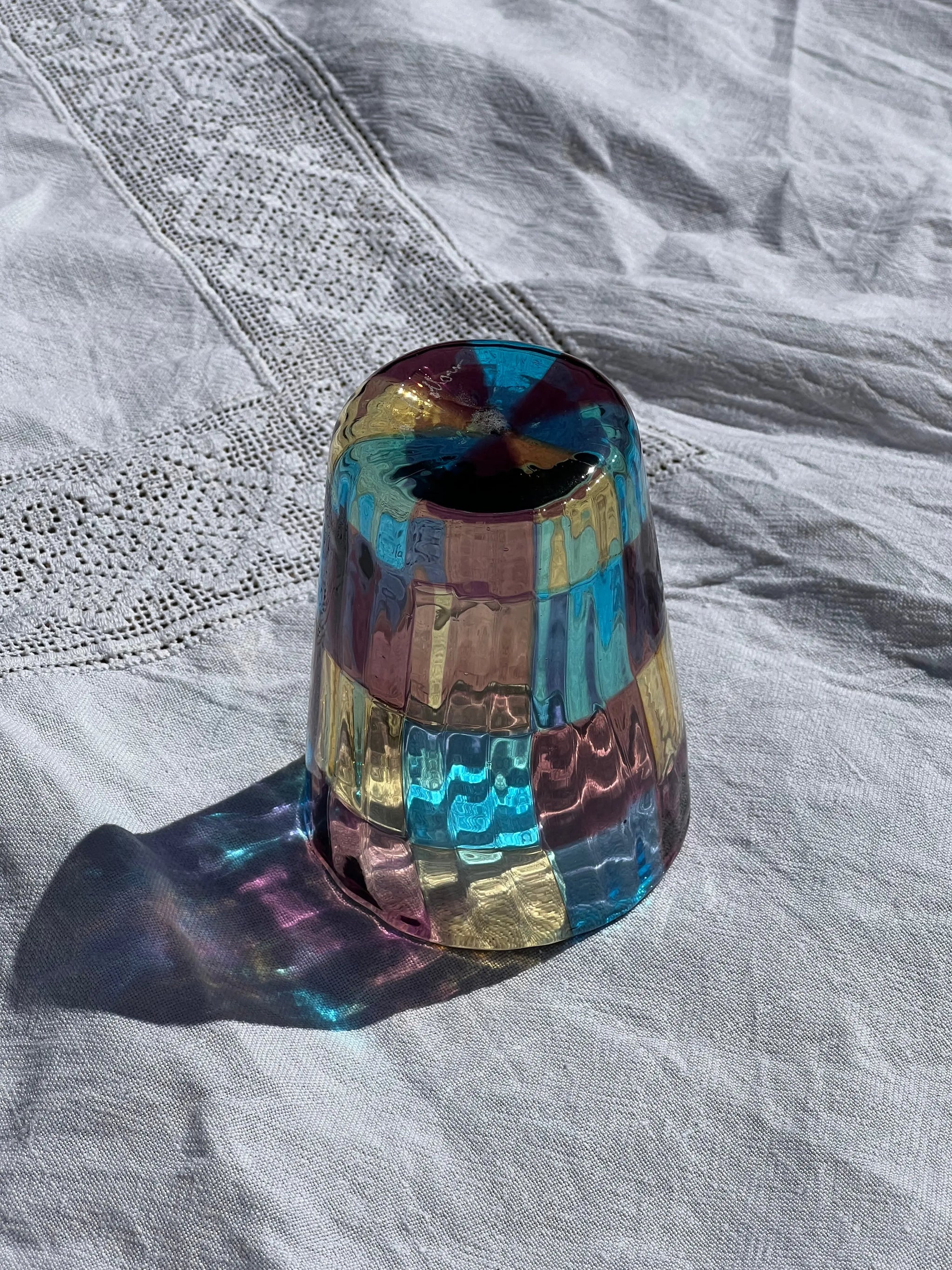 Håndblæst Murano Glas med skaktern i lyseblå, ametyst og lysegul