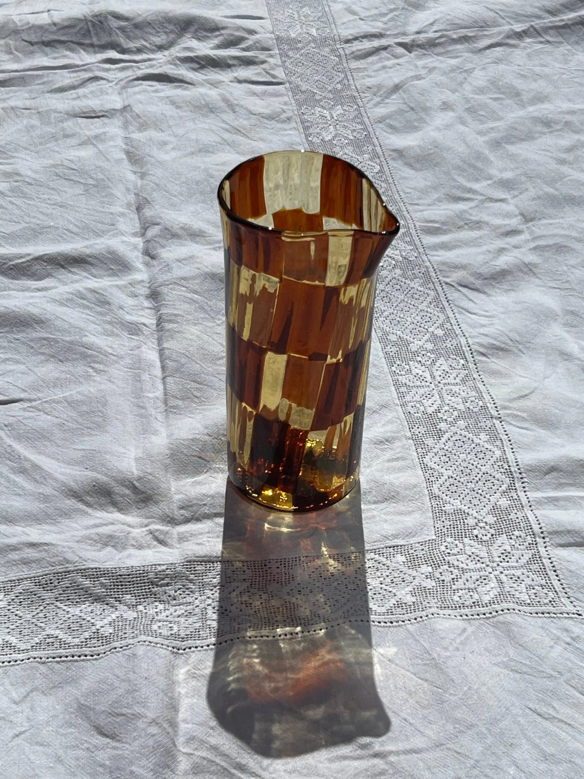 Håndblæst Murano Karaffel i Glas med Skaktern i Lysebrun/karamel og Mørkebrun