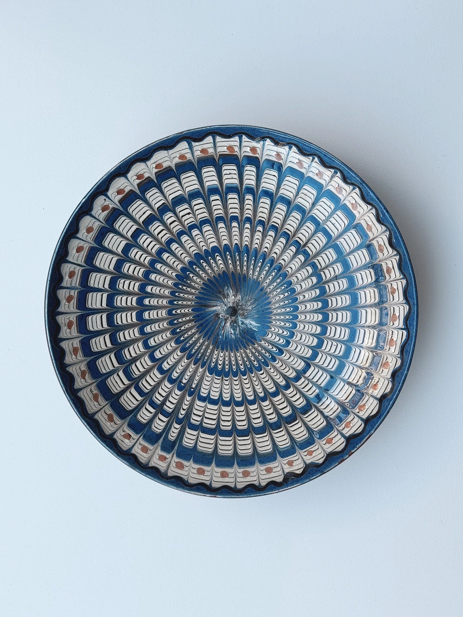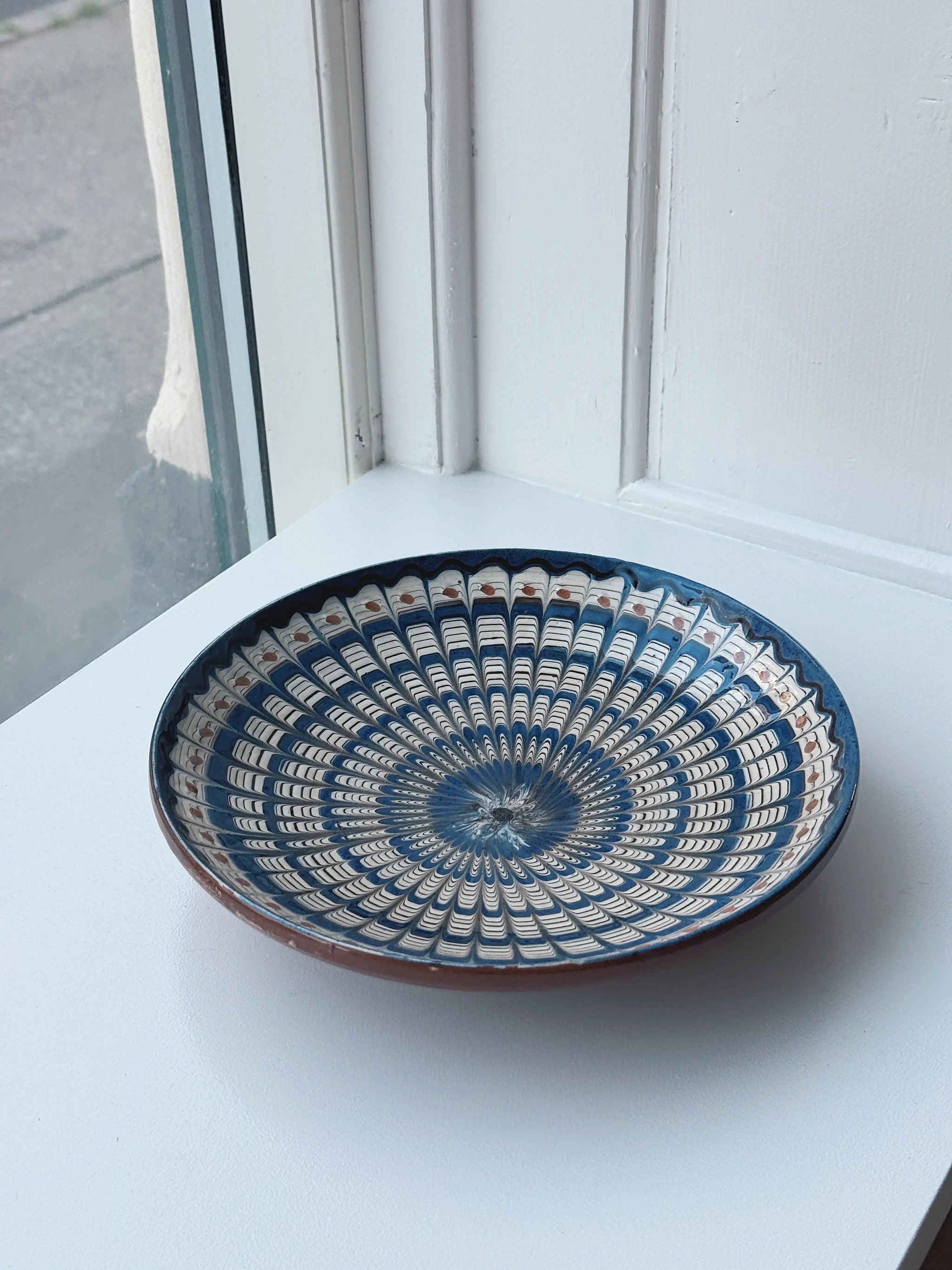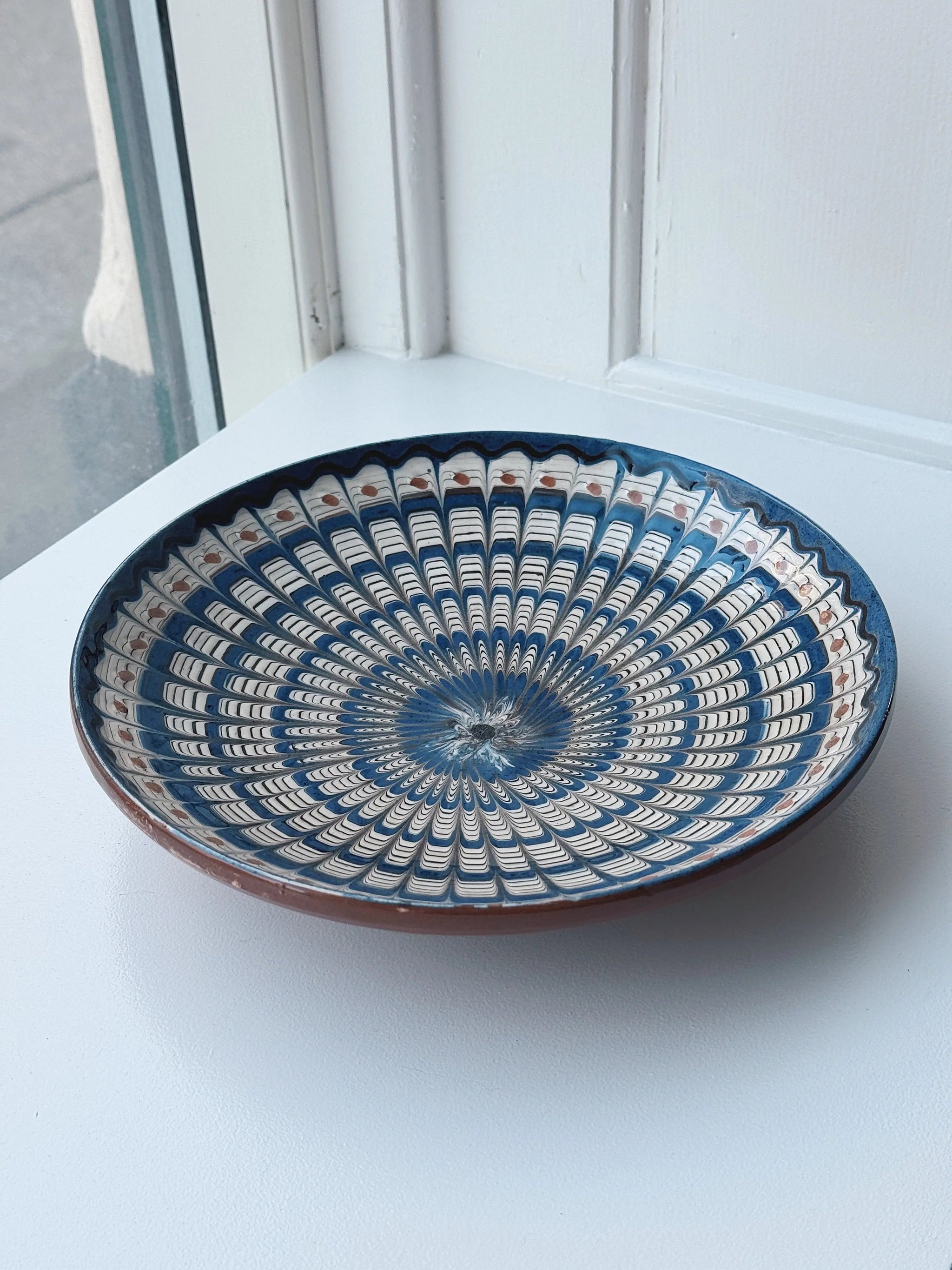 Smuk og dekorativ keramik tallerken/fad fra den rumænske by Horezu. Tallerkenen er skabt af dygtige lokale håndværkere og er omhyggeligt hånddrejet og håndmalet, hvilket giver den en unik karakter og skønhed. Ikke to tallerkener er helt ens, og teknikken er så enestående, at den er blevet optaget som en del af UNESCO’s verdensarv.