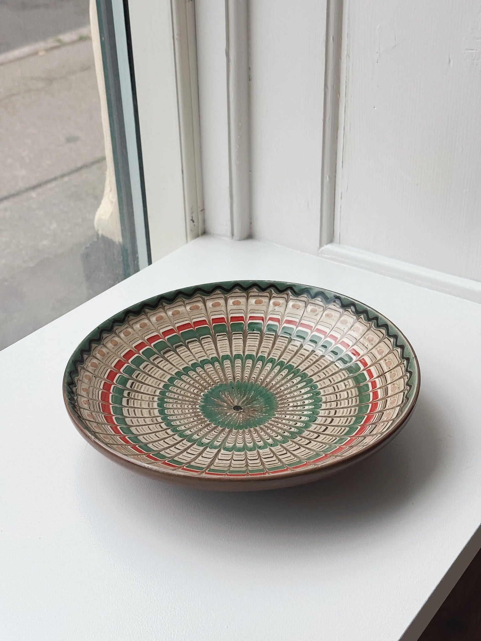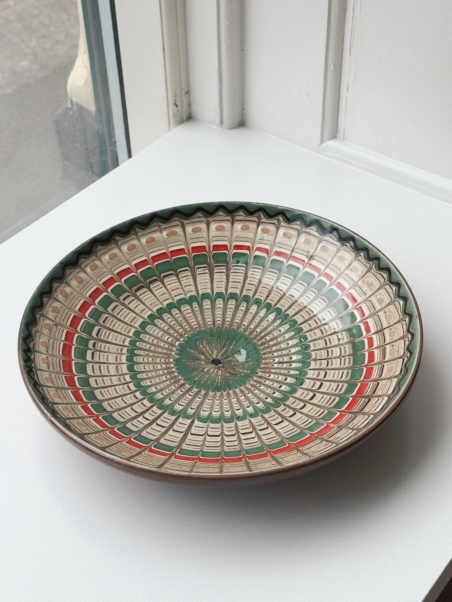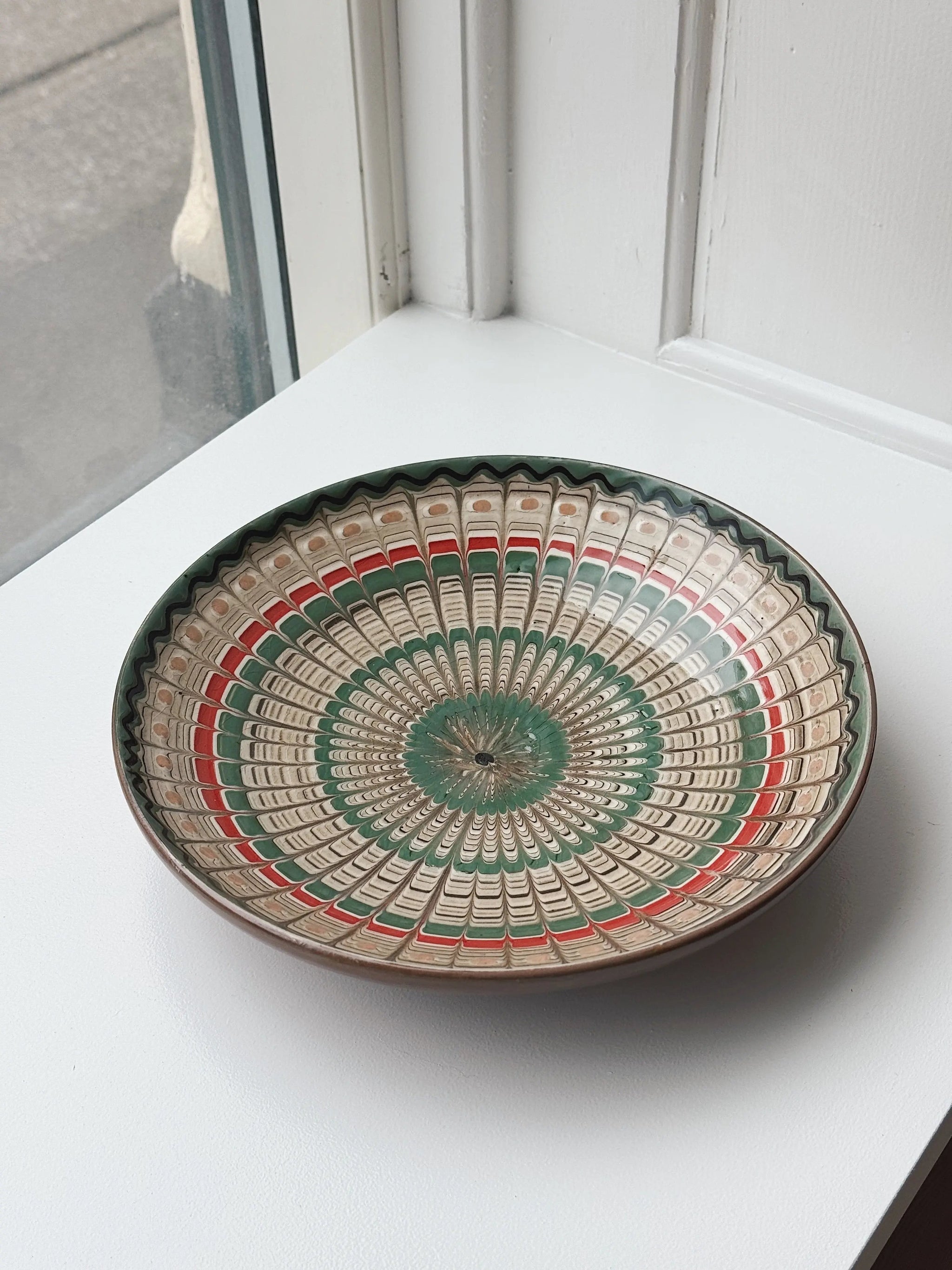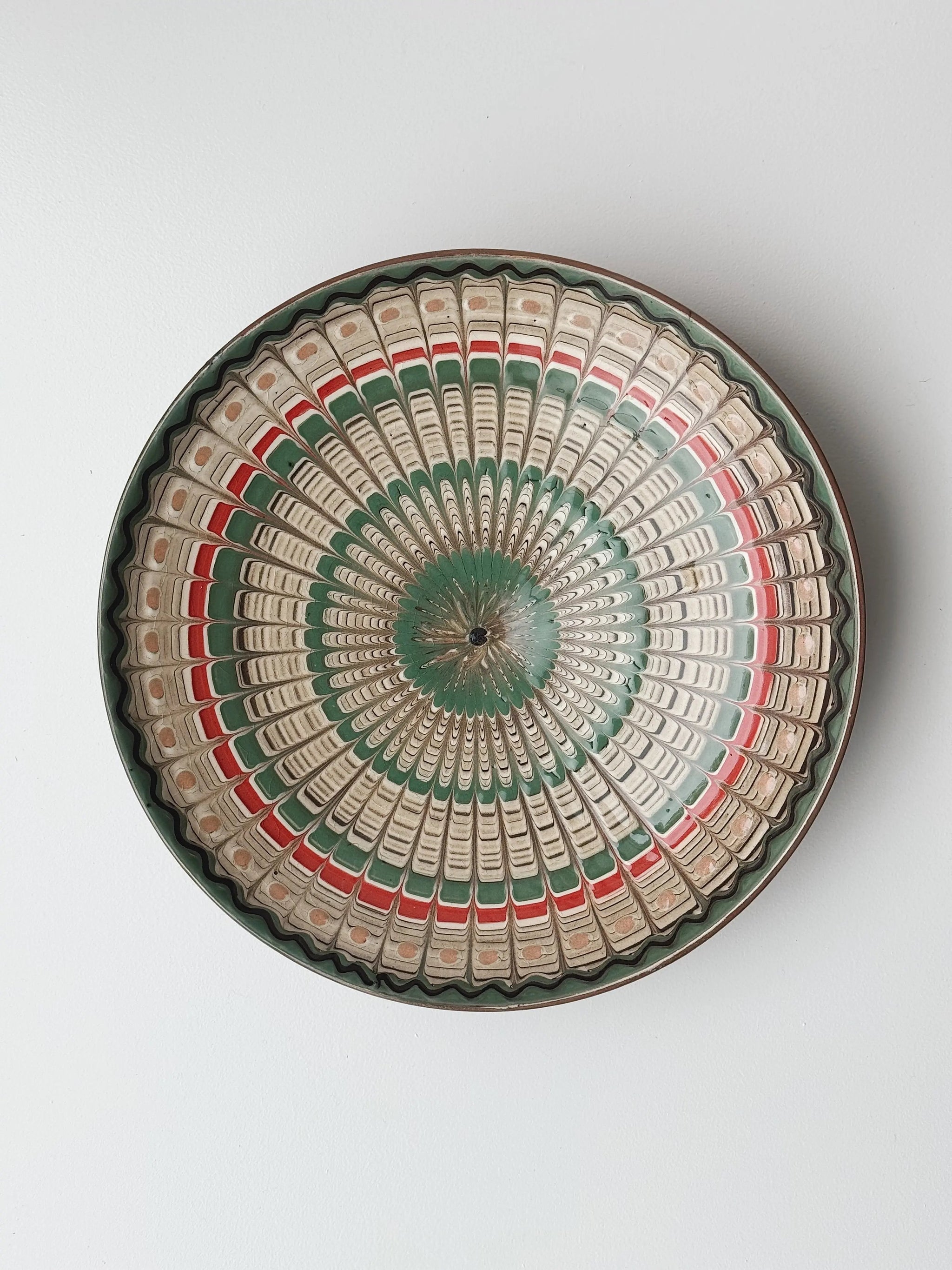 Smuk og dekorativ keramik tallerken/fad fra den rumænske by Horezu. Tallerkenen er skabt af dygtige lokale håndværkere og er omhyggeligt hånddrejet og håndmalet, hvilket giver den en unik karakter og skønhed. Ikke to tallerkener er helt ens, og teknikken er så enestående, at den er blevet optaget som en del af UNESCO’s verdensarv.
