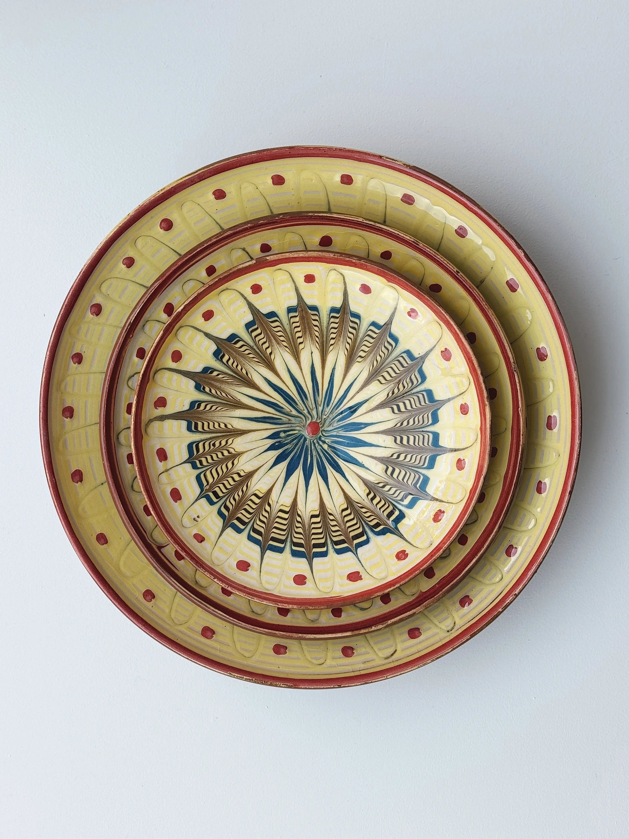 Smuk og dekorativ keramik tallerken/fad fra den rumænske by Horezu. Tallerkenen er skabt af dygtige lokale håndværkere og er omhyggeligt hånddrejet og håndmalet, hvilket giver den en unik karakter og skønhed. Ikke to tallerkener er helt ens, og teknikken er så enestående, at den er blevet optaget som en del af UNESCO’s verdensarv.