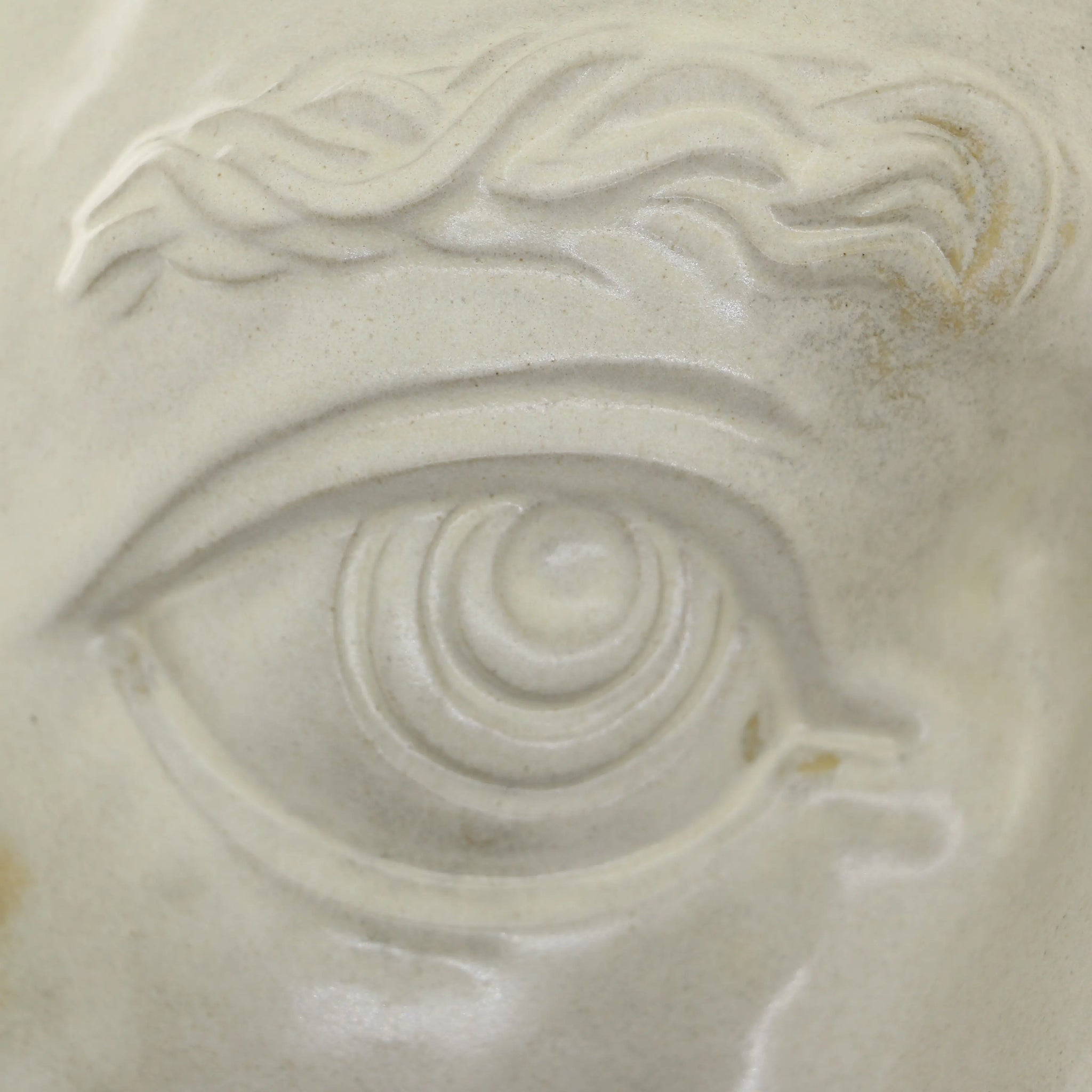 Hvert firkantede højre øje er unikt, da der ikke findes to ens. Variationer i glasuren skaber forskelle i farve og struktur, hvilket betyder, at hvert stykke udgør en individuel kunstoplevelse. Vær opmærksom på naturlige variationer i farve og tekstur på grund af den håndværksmæssige proces, hvilket kun gør kunsten endnu mere unik.