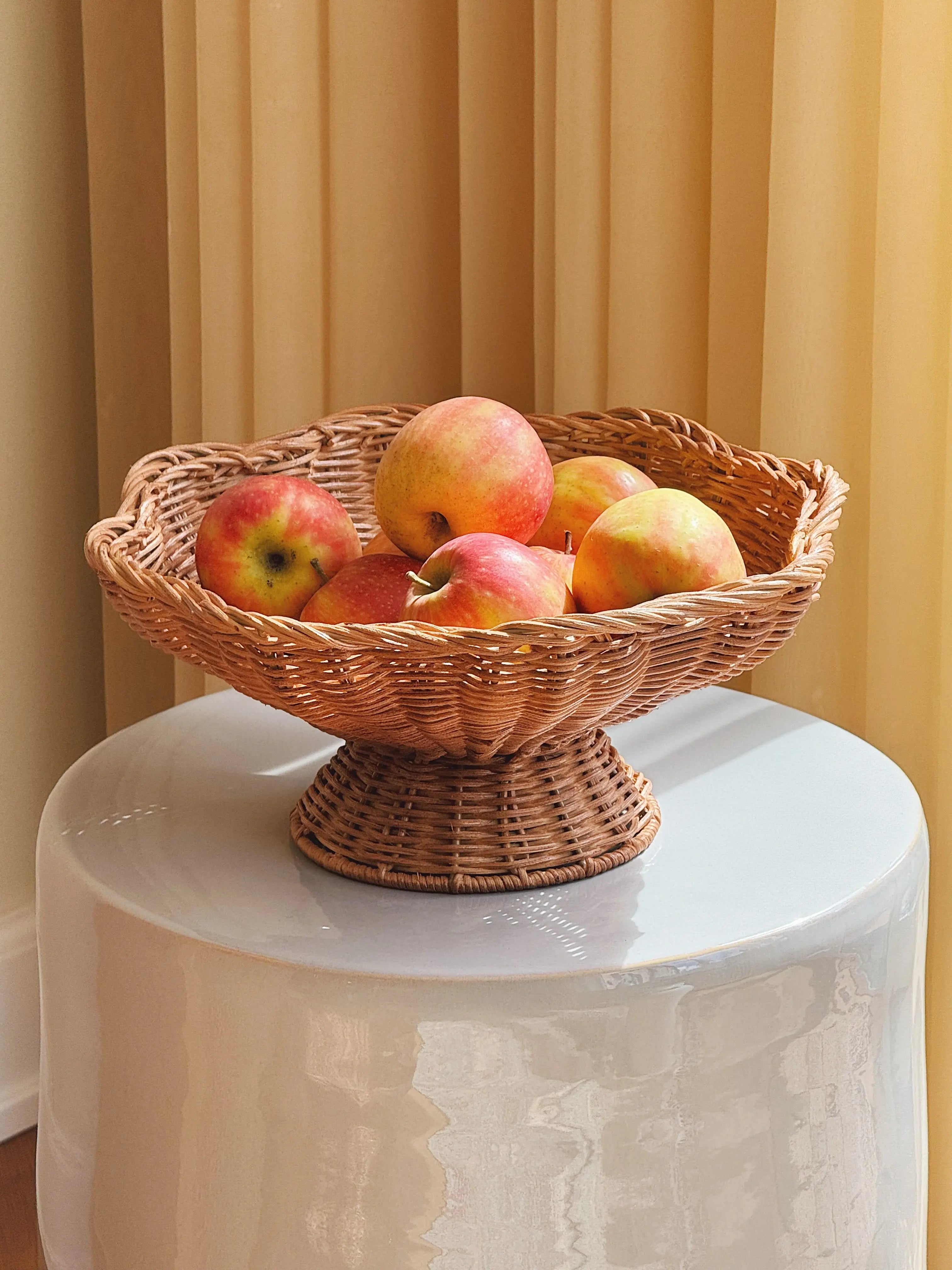 Rattan Skål på Fod – Frugtfad i To Størrelser