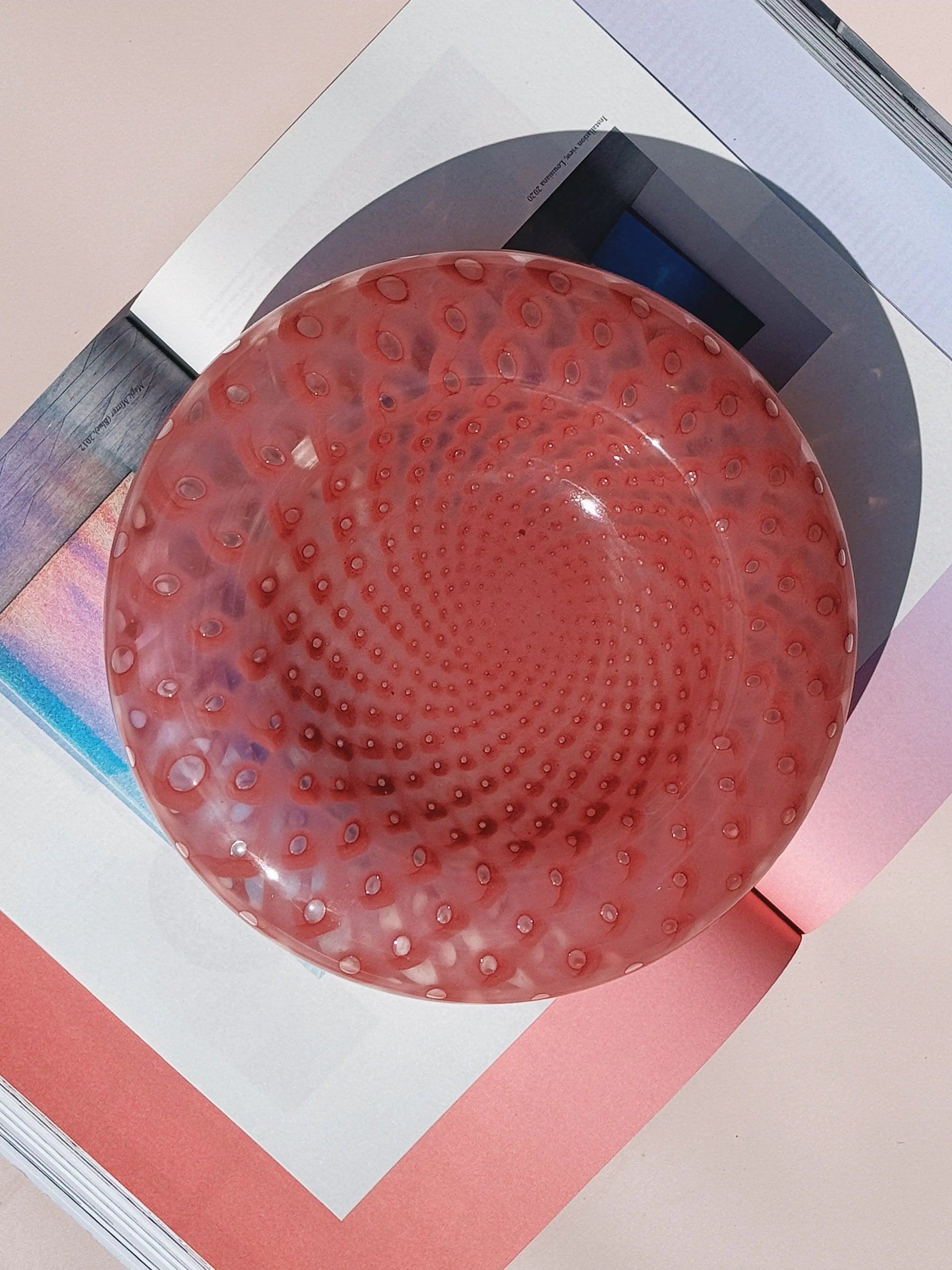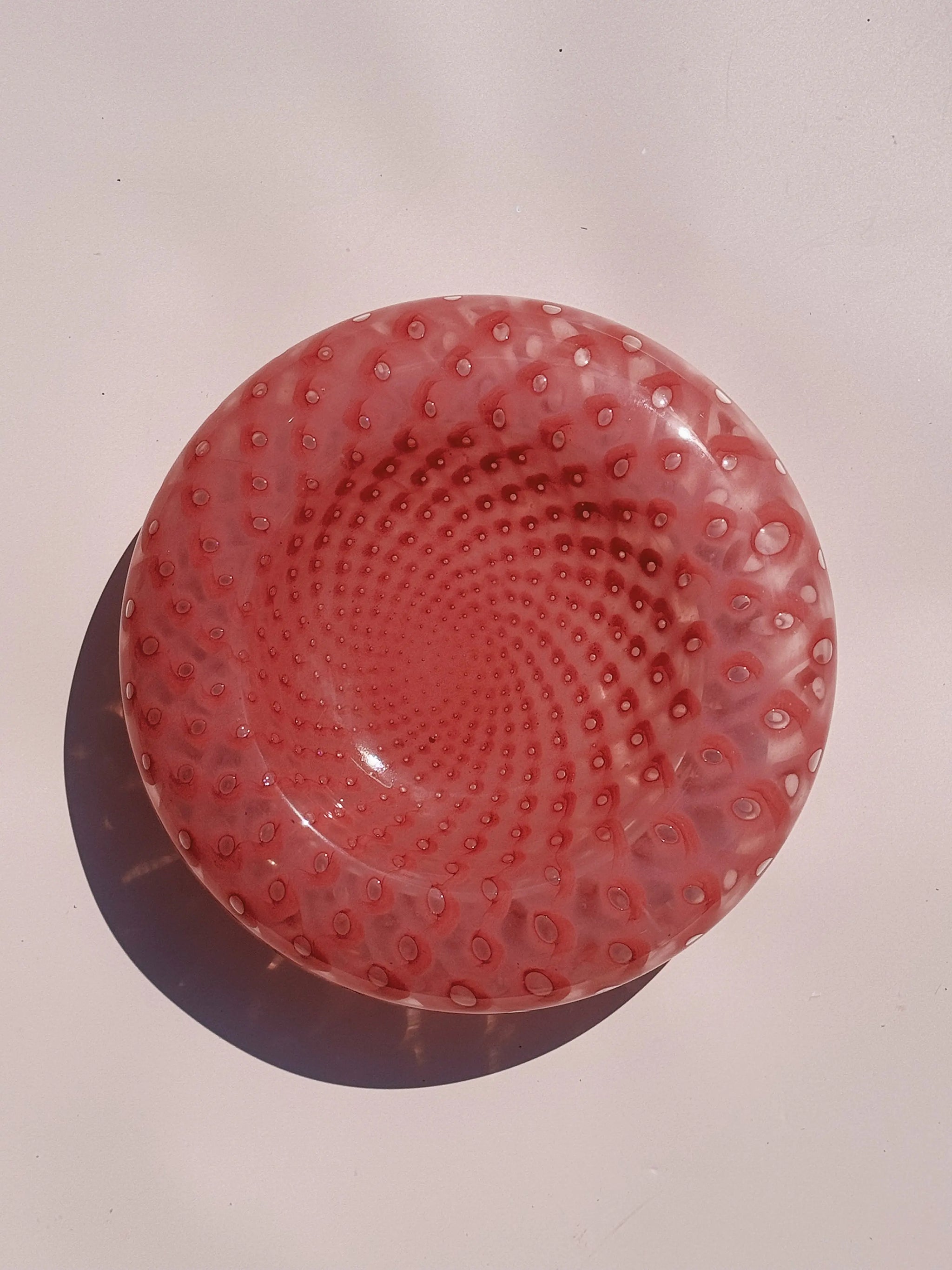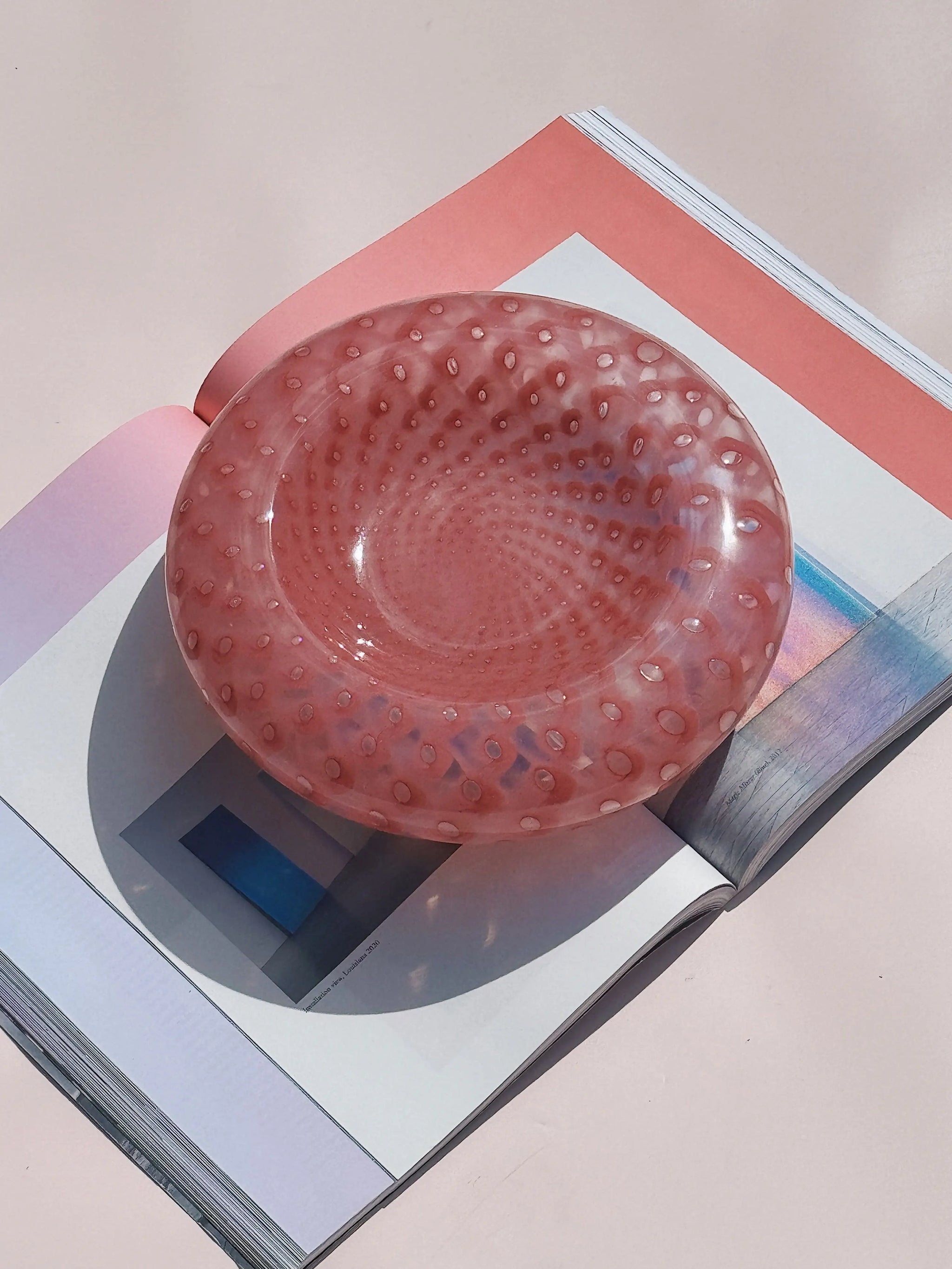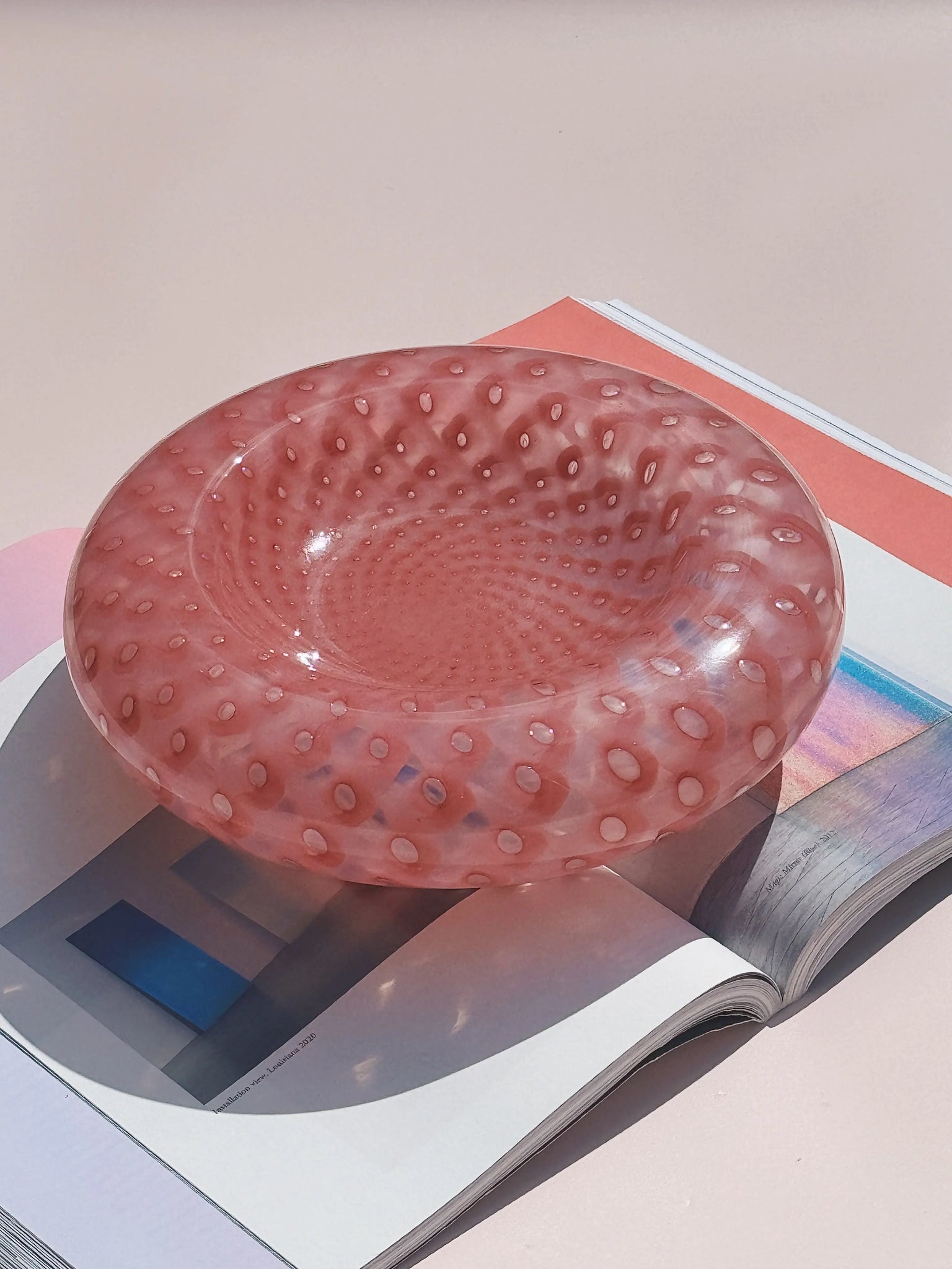 Vintage Murano Skål i Pink med Optiske Mønstre | D24 cm