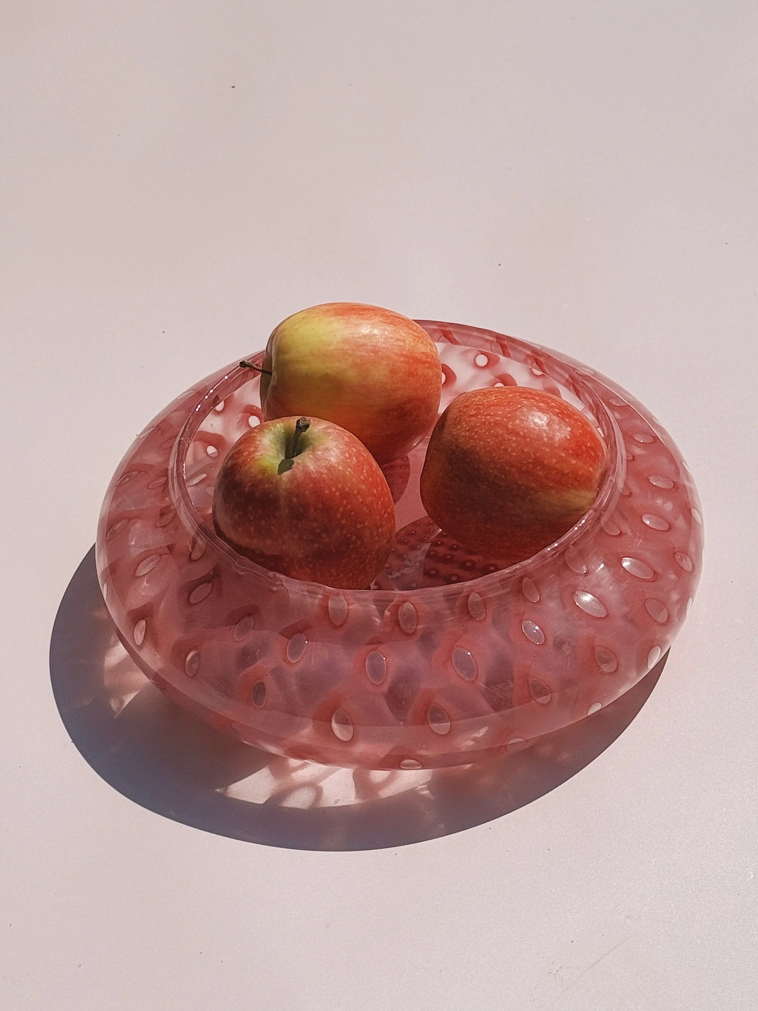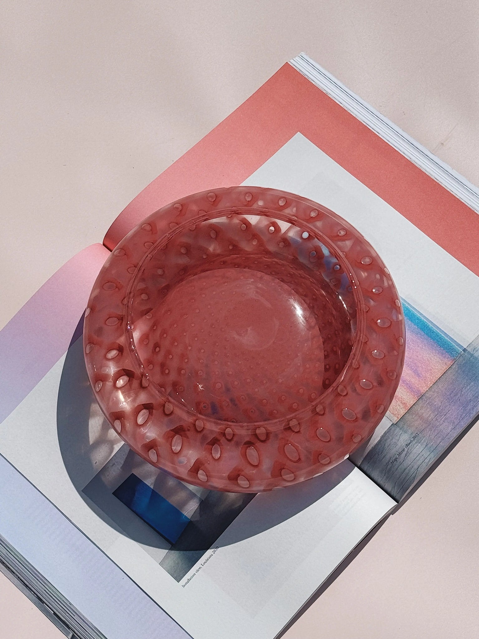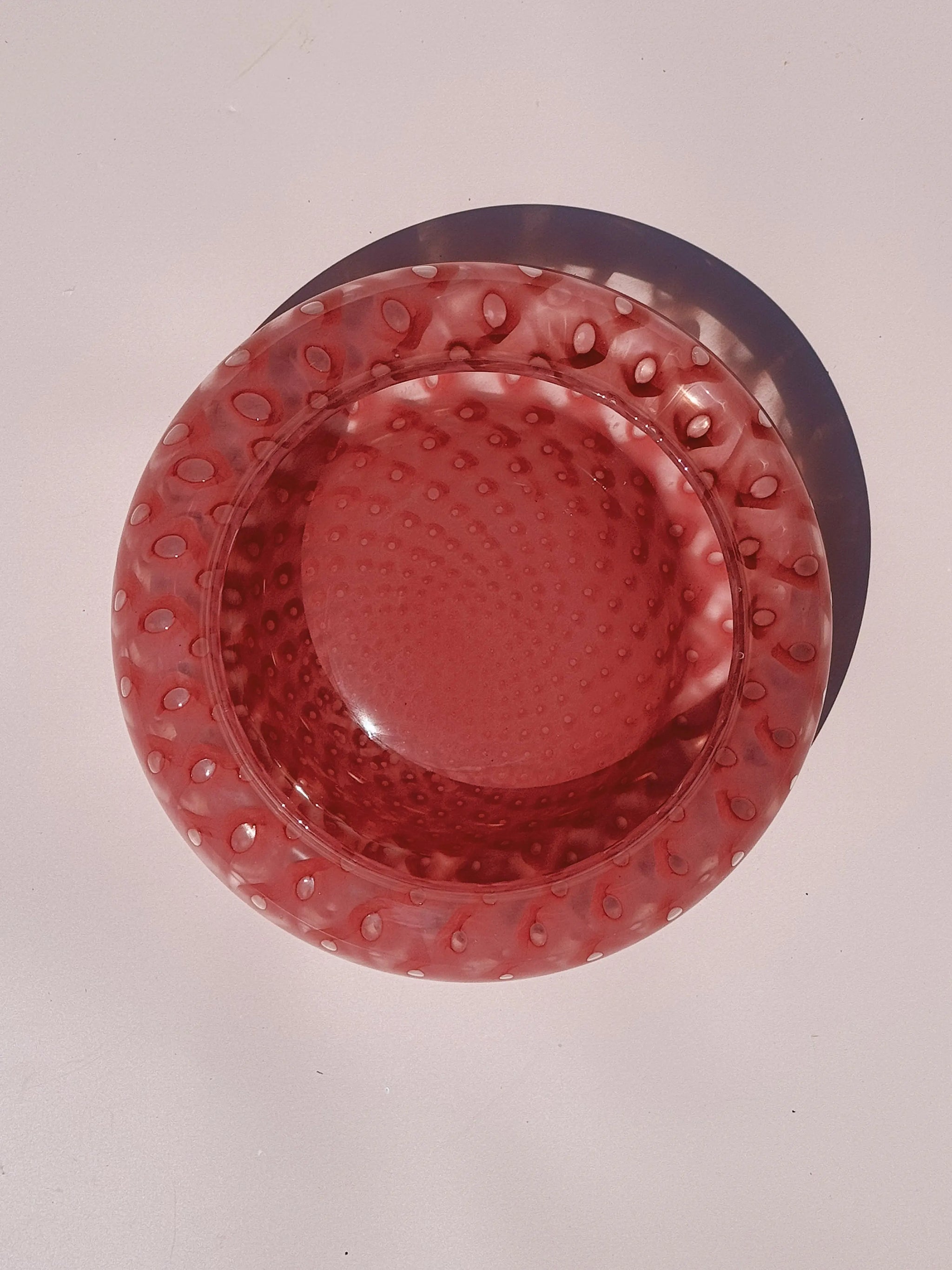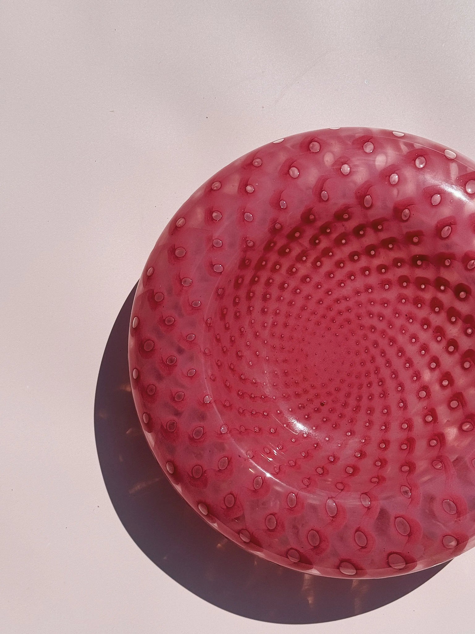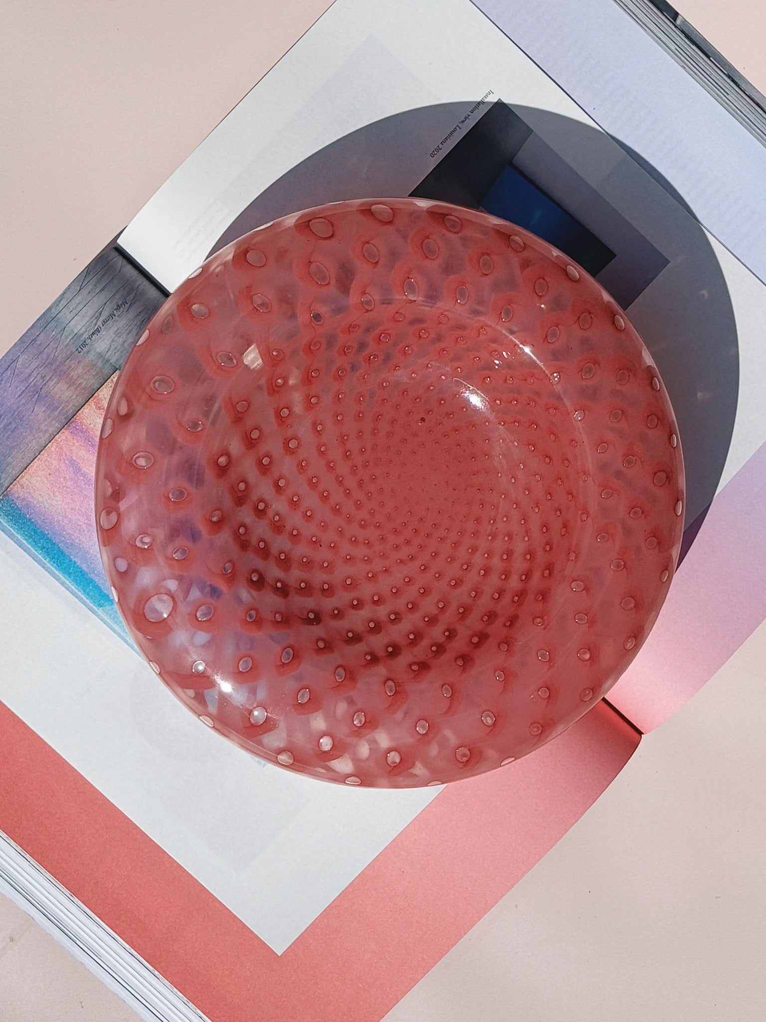 Vintage Murano Skål i Pink med Optiske Mønstre | D24 cm